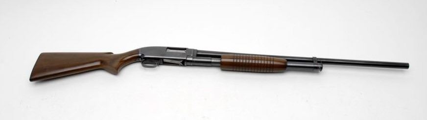 Winchester Model 12 takedown pump action shotgun, 12 gauge, 28” barrel, S/N 1698492, blued finish, wood stocks in overall fine condition with a fine bore, crisp action, majority of original finish remaining, sharp markings and fine wood.(Modern). Est.: $250-$500.