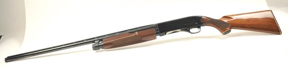 Winchester Model 1300 XTR pump shotgun, #LX013497, 20 Ga., 28” vent rib barrel, 2 ¾ or 3” shells, choked cylinder, blued finish, checkered wood stock with checkered plastic butt plate. The shotgun is in fine pluscondition overall, showing 96-98% original finish, the bore is excellent and the action is crisp. The stocks are about fine with minimal dings and scratches from storage and use. External screw in choke. 14” length of pull. (Modern/PPT) Est. $250-500