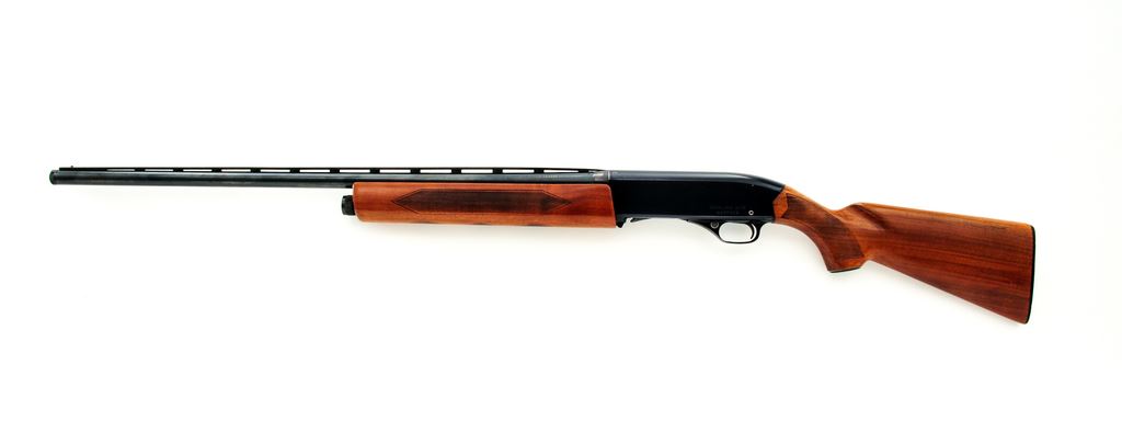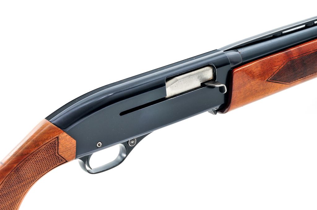 Winchester Model 1400 MKII Semi-Automatic Shotgun, #N697908, 20 ga., 2-3/4'' chamber, 28'' vent rib barrel, screw-in Full choke, blue finish, alloy receiver, silver bead front sight, press checkered walnut stock, with hard rubber Winchester buttplate. Receiver and barrel are both Winchester proofed. Condition is very good. Metal surfaces retain approx. 95% factory blue. Barrel with a few spots of minor surface rust; receiver with general light scratching. Wood retains a majority of its finish with scattered shallow surface dents and scratches; wrist with a few very fine hairline fissures. Action is smooth and crisp with a bright bore. Est.: $150-$250. (Modern)