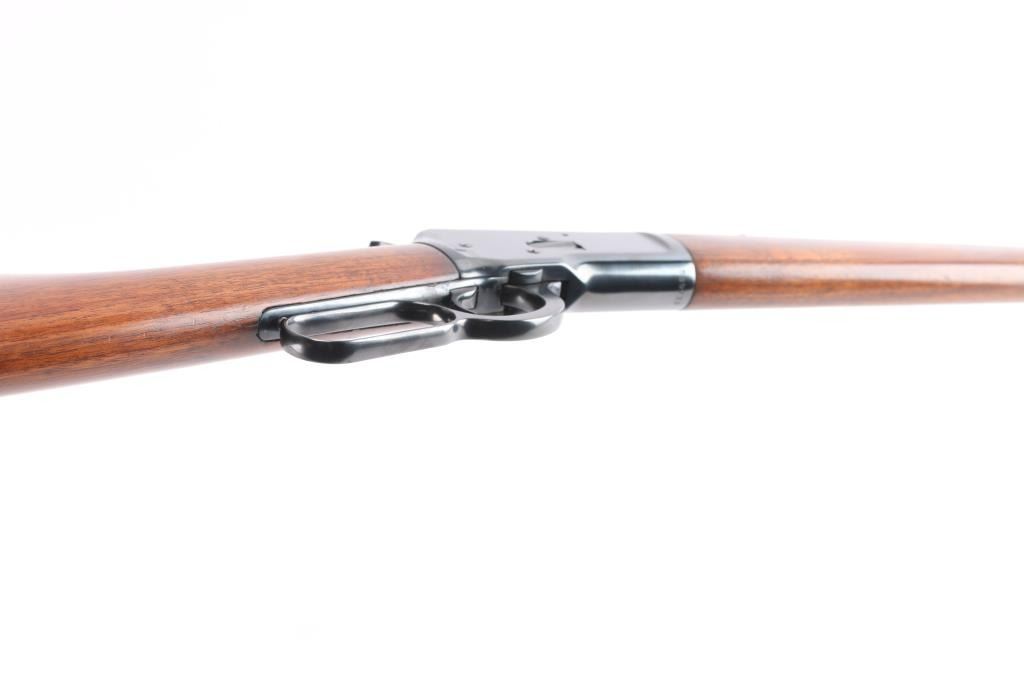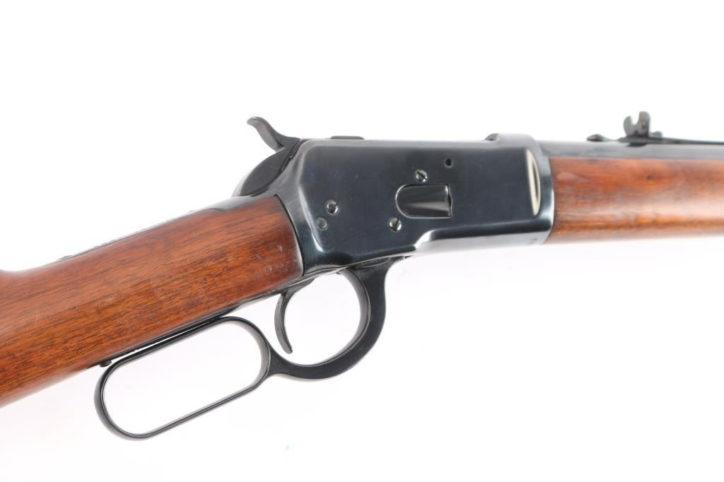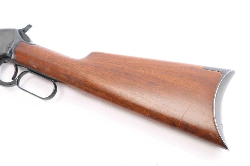Julien's Auction held a major auction titled "PROPERTY FROM THE LIFE AND CAREER OF DON MCLEAN" in November 2022 to celebrate the 50th anniversary of "American Pie". The auction, which took place at the Hard Rock Cafe in New York City, featured over 300 items from McLean's personal collection, including this rifle. Professionally restored Winchester model 1892 lever-action rifle chambered in .38 W.C.F. (.38-40). Manufactured 1911. 24" round barrel with dovetailed blade with brass top front, adjustable buckhorn rear sights, half length tube magazine, high-polish blued finish, lever safety, straight wrist, smooth walnut shoulder stock & forearm with metal fore cap, crescent steel buttplate. The bore is excellent/bright, lever action is smooth, the re-blued finish is about 96% with some minor rubs and the wood is overall excellent with a couple of minor scratches. All Winchester markings are very clear. Comes with paperwork from the auction & original auction tag. Note: there is a Winchester model 1886 from the same collection up for bid in this auction.