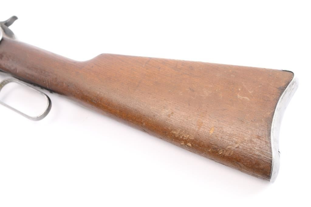 GOOD: Some minor replacement parts; metal smoothly rusted or lightly pitted in places, cleaned or re-blued; principal letters, numerals and design on metal legible; wood refinished, scratched bruised or minor cracks repaired; in good working order.