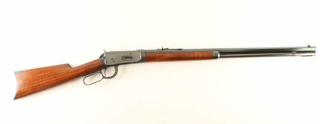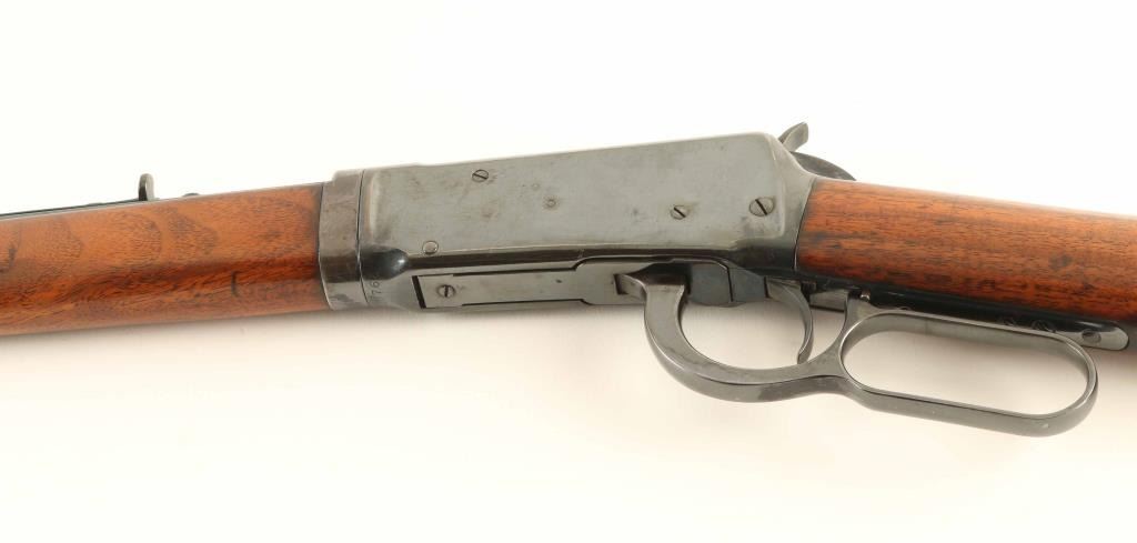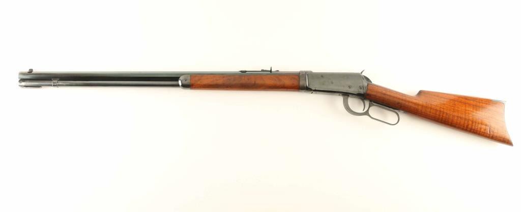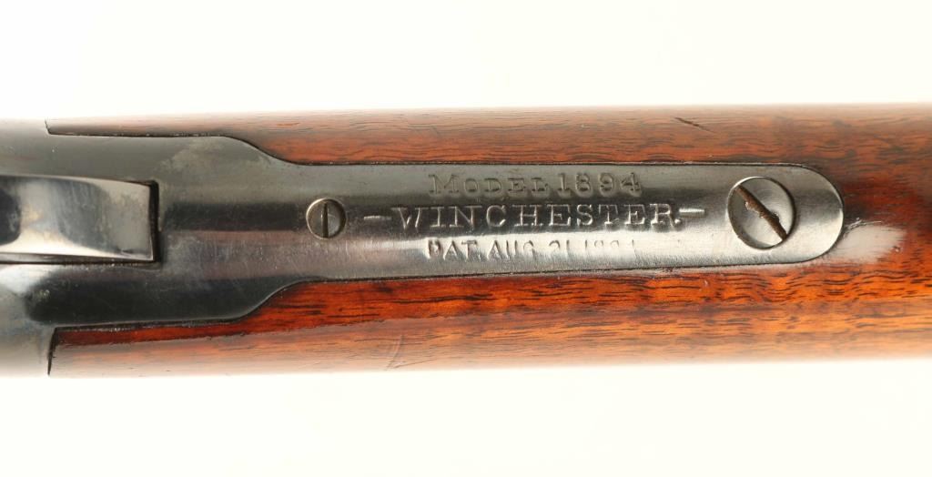 Special Order Takedown Rifle with a 26” octagon barrel, rifle butt and made in 1900, S/N 193766. Shows an old good quality refinish with visible address and markings. Select grain showing in butt stock probably IX. Tight at takedown joint and the bore shows some peppery type erosion however rifling is still fair to good. Hard to find special order model ‘94’s that were advertised as “The Klondike Rifle” as many headed north to Alaska in their gold rush. Condition is NRA Very Good as refinished ****Antique Firearm****