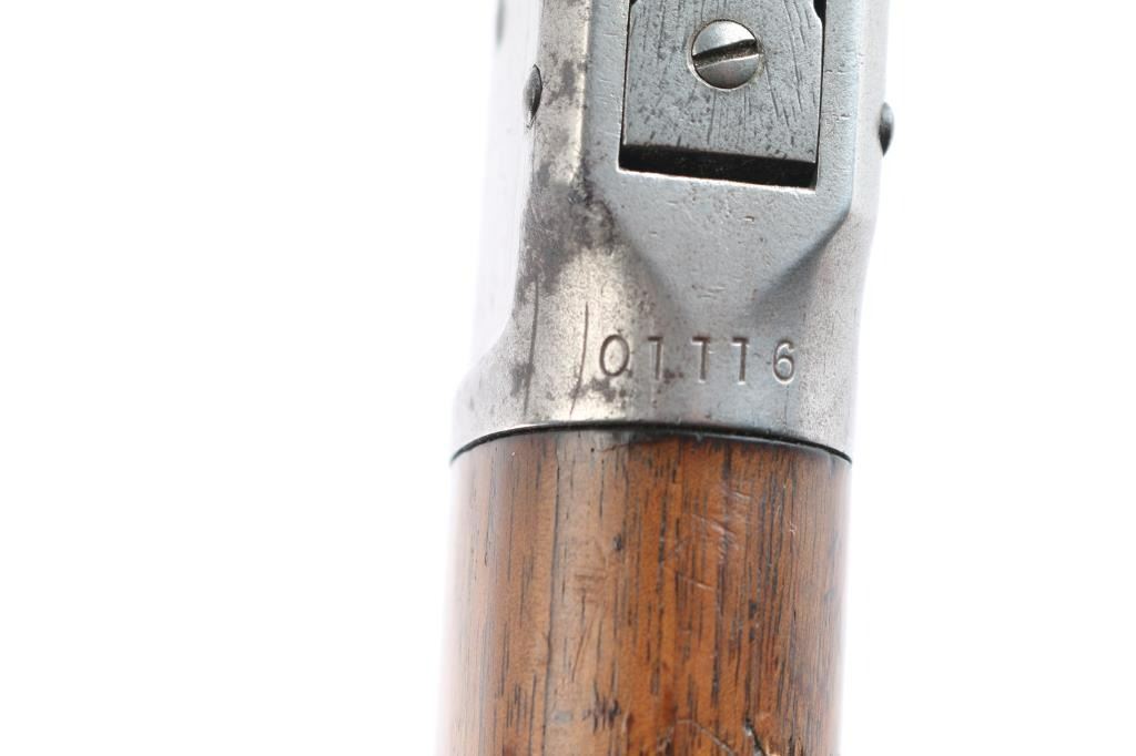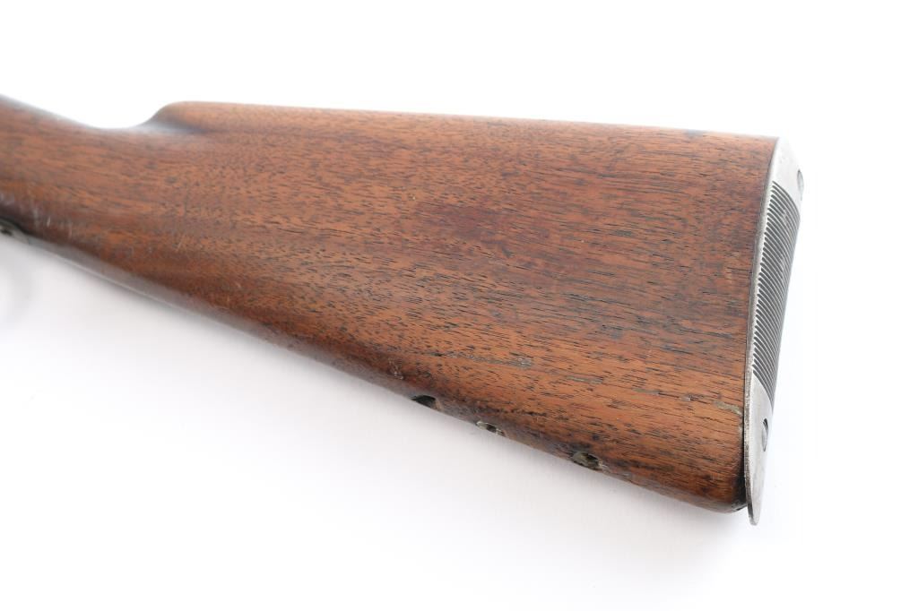 GOOD: Some minor replacement parts; metal smoothly rusted or lightly pitted in places, cleaned or re-blued; principal letters, numerals and design on metal legible; wood refinished, scratched bruised or minor cracks repaired; in good working order.
