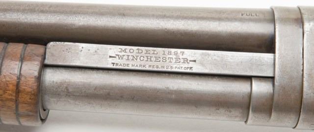 Winchester Model 1897 takedown shotgun, 16 gauge, full choke, 28” barrel, wood stocks, added hard