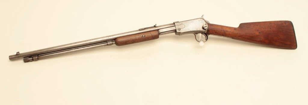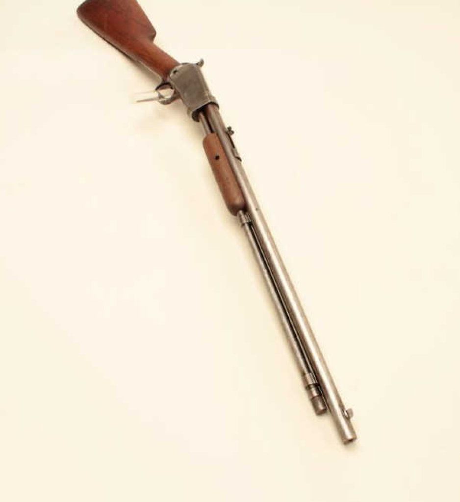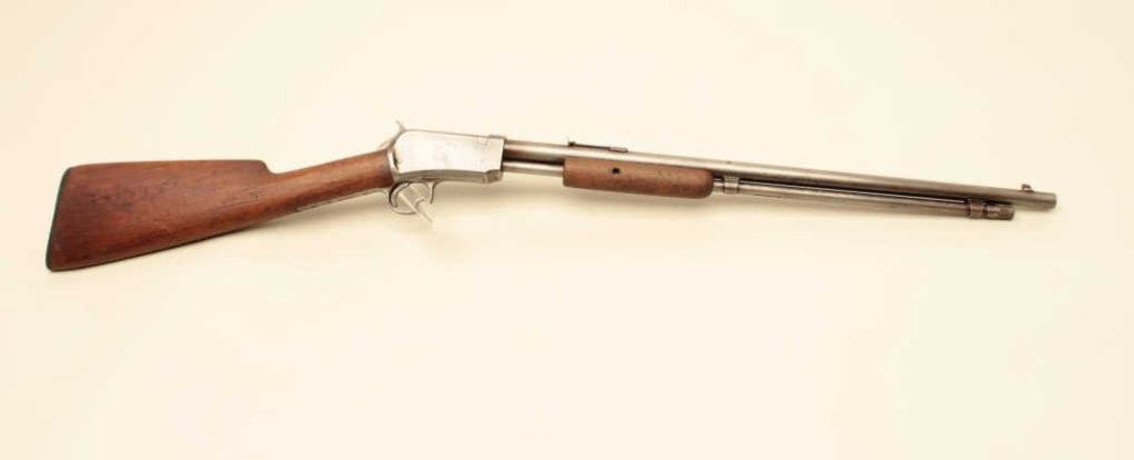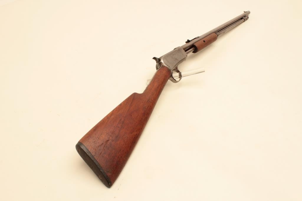 LR caliber, 20” barrel, wood stocks, S/N 322945, in overall fair to good condition with a fair bore, grey patina to metal surfaces, good action, visible markings and wood stocks that are somewhat dry and showing scattered mars, dings, age cracks, etc. from carry and long storage. (C&R). Est.: $200-$400.