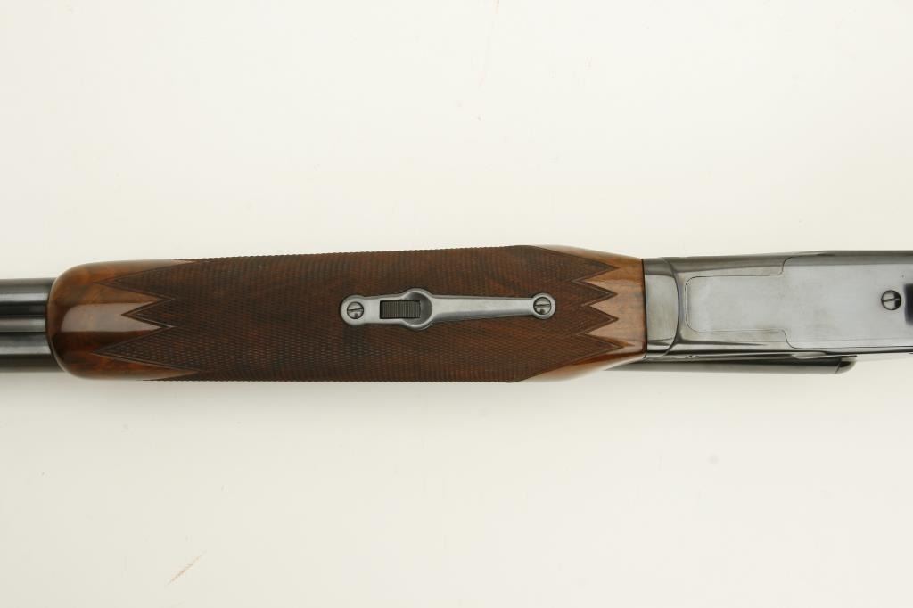 28” barrels, single trigger, checkered wood stocks, Pachmayr hard rubber butt pad, LOP is 13” to end of wood, 14.5” to end of butt pad, S/N 27406, expertly refinished to like mint condition by Gun Works in L.A.; a beautifully restored Model 21. (Modern). Est.: $5,000-$10,000.
