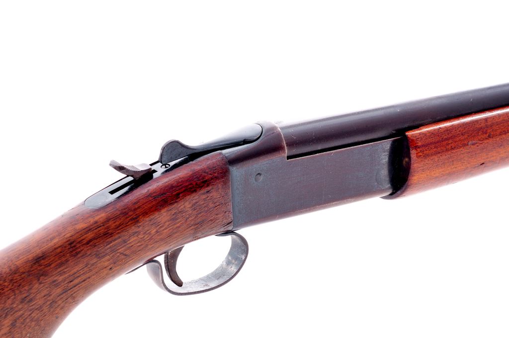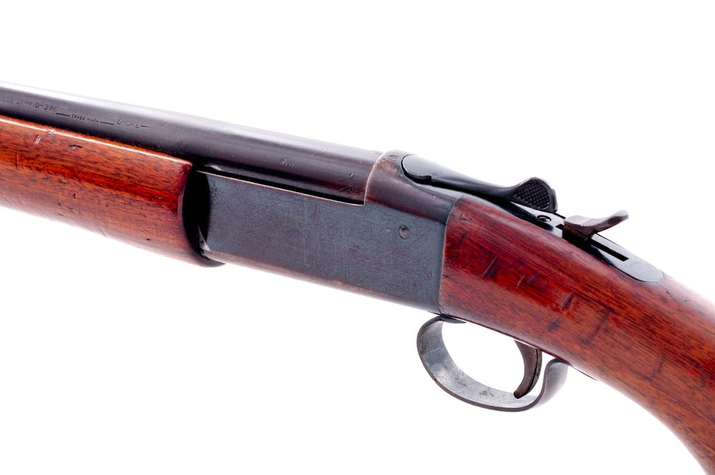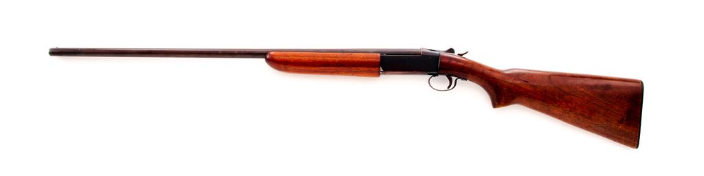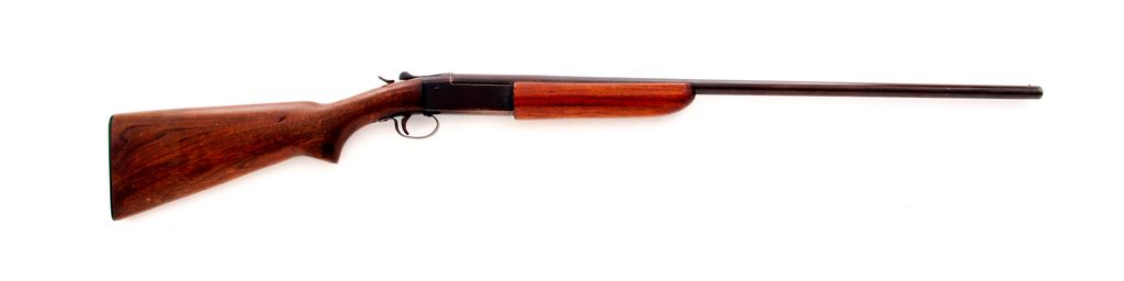 Winchester Model 37 Single-Shot Shotgun, NVSN, .410 bore, 3'' chamber, 28'' barrel, blue finish, pistol-grip walnut stock, black composition Winchester buttplate, with silver bead front sight and exposed hammer. Top of barrel and receiver are both Winchester proofed. Condition is good with approx. 30% toning blue on the receiver, the balance with an overall reddish brown patina. Barrel address is legible. Wood shows age and wear consistent with the rest of the shotgun, including general surface mars and finish loss to the buttstock; forend with an added coat of varnish. Action is smooth. Bore is bright with the exception of three moderate pits approx. 6'' down from the muzzle. Est.: $125-$225. (C&R)