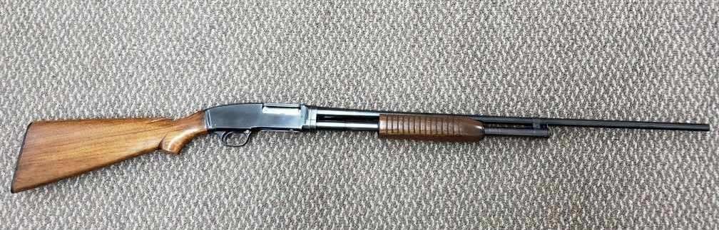Winchester Model 42 Pump .410 Shotgun. This is a very nice used M-42 manufactured, according to serial number, in the very early 1950s. The gun shows some bluing wear on the edges from being carried and also some minor rubs and scratch marks here and there on the receiver and on the barrel. The wood is standard grade with a nice straight grain that shows some compression marks from use. All in all it is a nice early standard grade M-42, without rib, that rates around Very Good using the NRA modern firearm scale, in our opinion, with about 80% or better for bluing and wood finish. We have not fired this shotgun. A gunsmith should be consulted before loading and firing, but all mechanics appear to work properly and smoothly with no problems noted during a physical inspection. This shotgun has been used little, if at all, for several years. Transfer to the winning bidder will be done through an FFL licensed dealer.