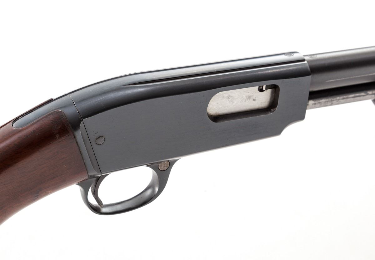 Winchester Model 61 Pump Action Rifle, #224141, .22 S-L-LR cal., 24'' round barrel, blue finish, walnut stock and 17-groove forend, top of receiver factory grooved for scope rings. Mfg'd 1955. Condition is near excellent. Metal surfaces retain approx. 96% blue with most of the losses in actioning areas and as minor scratches to receiver flat. Stock with minor scratches and finish loss to left cheekpiece area. Action is crisp, bore is bright. Est.: $600-$800. (C&R)