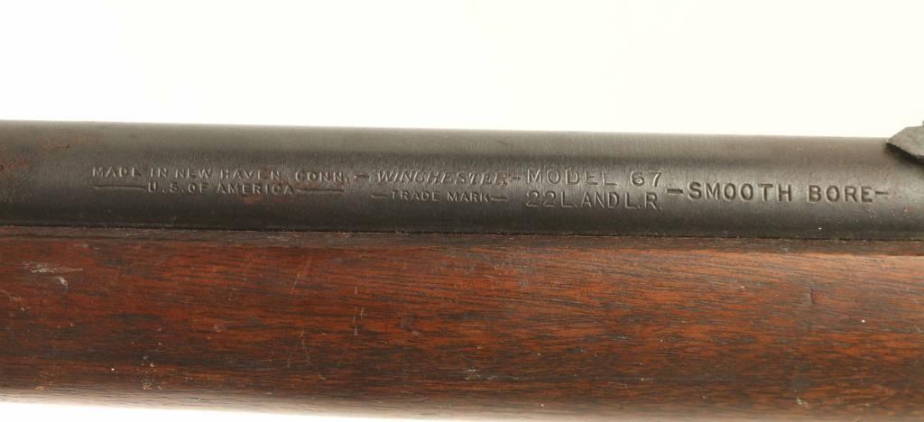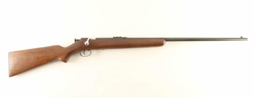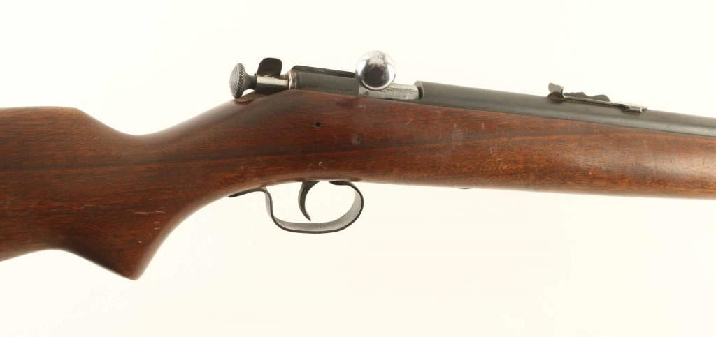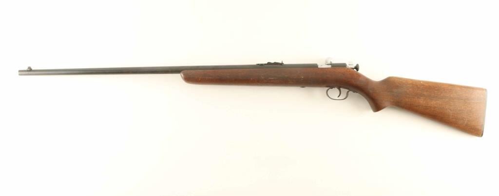 NVSN Bolt action single shot rimfire shotgun features blued finish, wood stock, 27" smooth bore barrel, adjustable sights, must be cocked manually to fire, manual safety. Bore is very good condition. Retains 85% finish, beginning to turn brown, with thinning or bare metal on sharp edges. Stock is good condition with scratches, loss of varnish in spots. Condition is NRA Very Good *** C&R Firearm ***