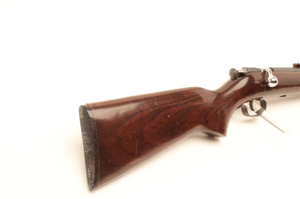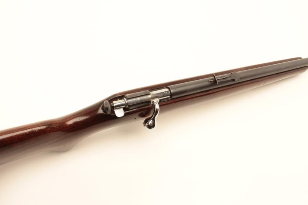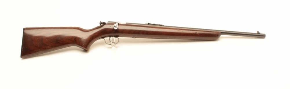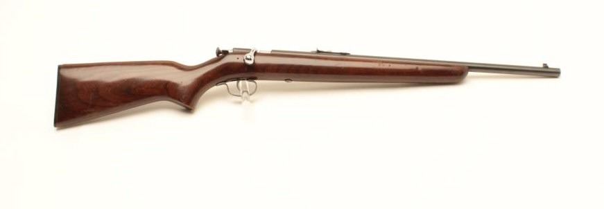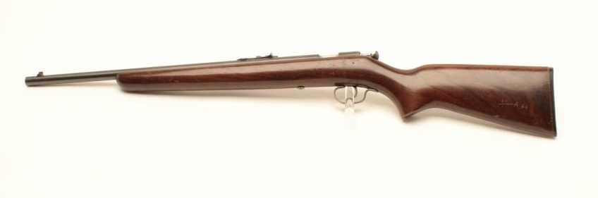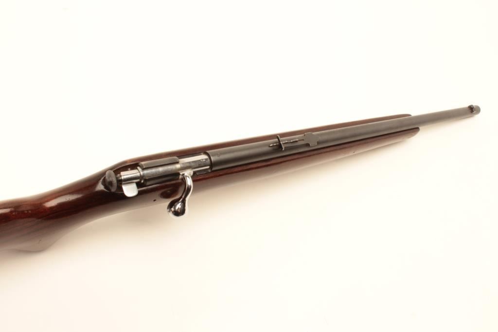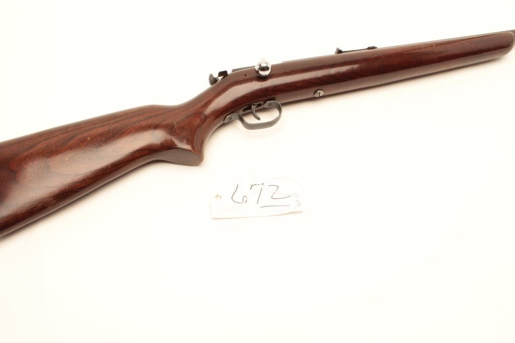 Winchester Model 67A bolt action rifle, .22 short, long or LR caliber, 20” barrel, blued finish, wood stock, no visible S/N, in overall very good condition displaying majority of factory blue finish, very goodbore, crisp action, sharp markings and very good stock. (Modern/No PPT). Est.: $100-$200.
