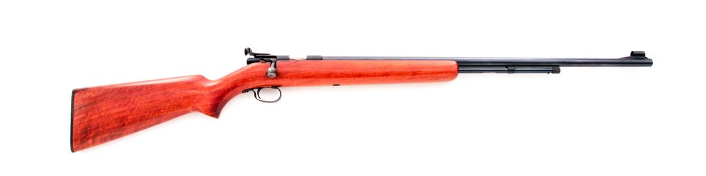 Winchester Model 72 Target Bolt Action Rifle, NVSN, .22 S-L-LR cal., 25'' barrel, blue finish, pistol-grip walnut stock, black composition Winchester buttplate, hooded silver bead front sight, with aperture rear sight. Top of barrel and receiver are both Winchester proofed. Rifle is in near fine overall condition with approx. 95% blue. Metal with scattered tiny specks of oxidation. Factory lettering is sharp. Rear sight base finish has thinned and shows moderate toning. Wood with normal faint marks from handling; right side of buttstock with one spot of slightly larger scratches. Action is smooth with a near excellent bore. Est.: $150-$300. (C&R)