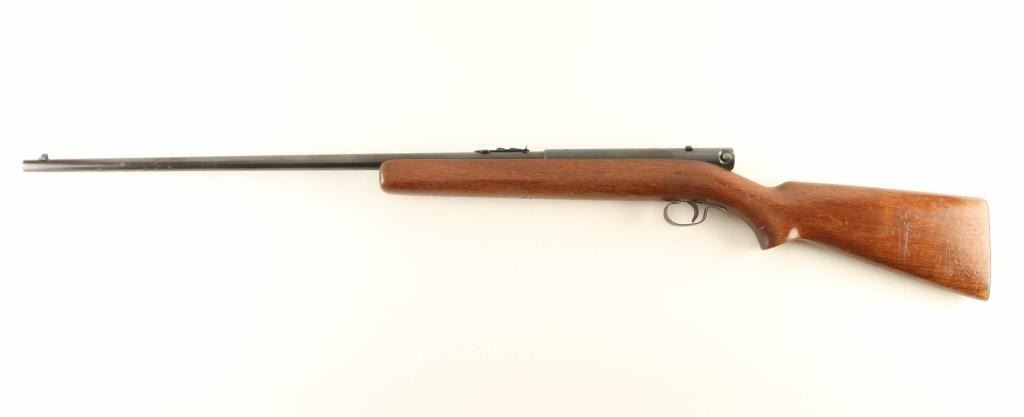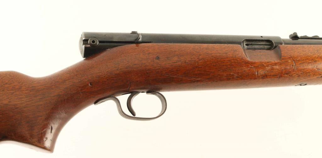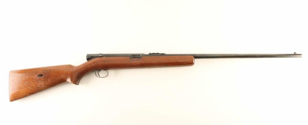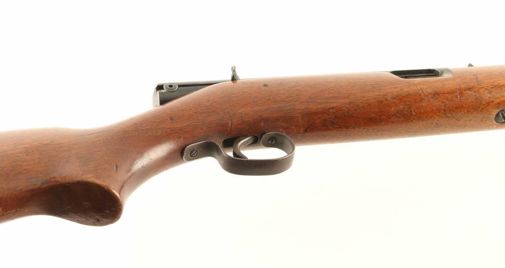 Semiautomatic rimfire rifle manufactured circa 1941. Features blued finish, wood stock, magazine tube in butt, buckhorn type sights, 24" barrel, manual safety. Bore is very good condition. Retains 80% blue, with bare metal on sharp edges, some patina on receiver and barrel. Stock is good condition with many scratches and shallow scrapes. Condition is NRA Good + *** C&R Firearm ***