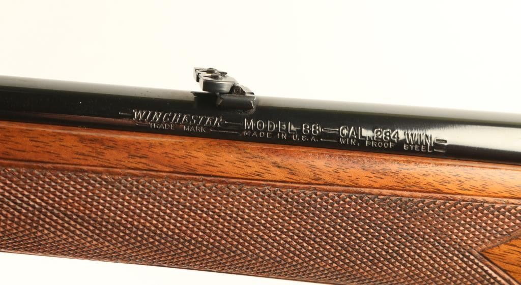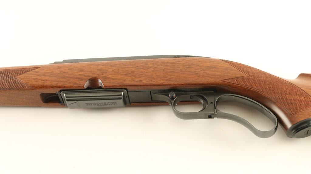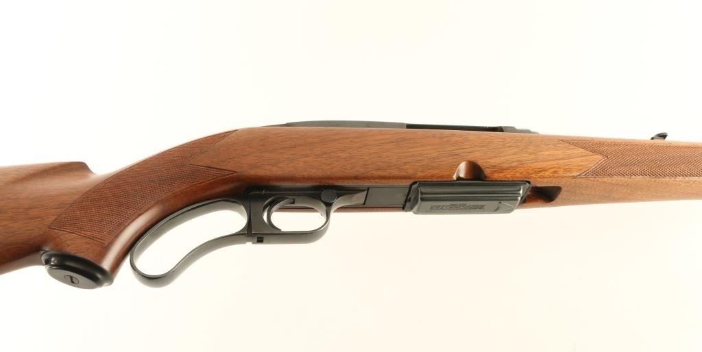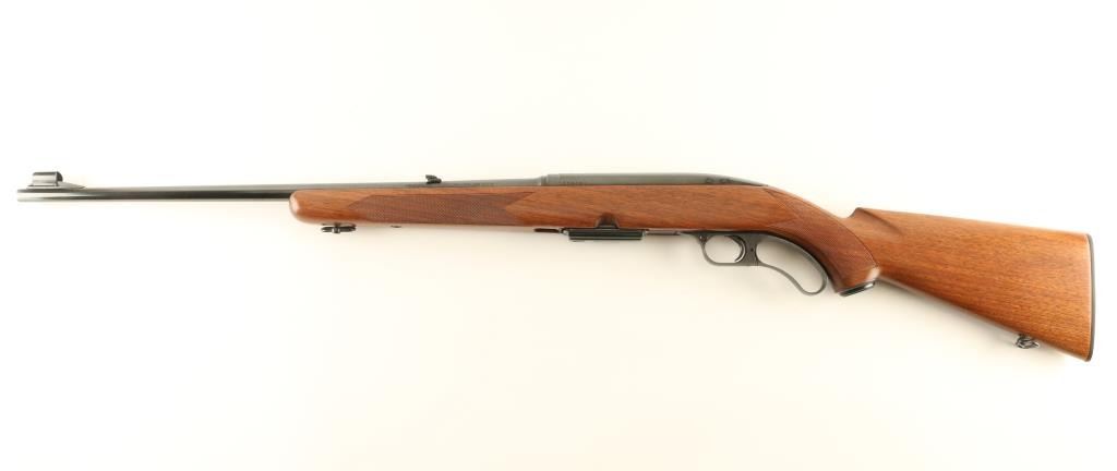 Lever action rifle manufactured circa 1964. Features blued finish, wood stock with curved grip, checkered panels at wrist & forend, flat plastic buttplate, 22" barrel, hooded blade front sight, folding adjustable rear sight, detachable box magazine, manual safety, sling swivels. Bore is very good condition. Retains 90% blue, with scratches & scrapes. Wood is very good condition with dents & scratches. Includes (1) magazine. Condition is NRA Very Good ++ *** C&R Firearm ***