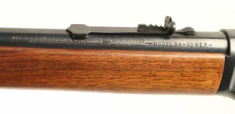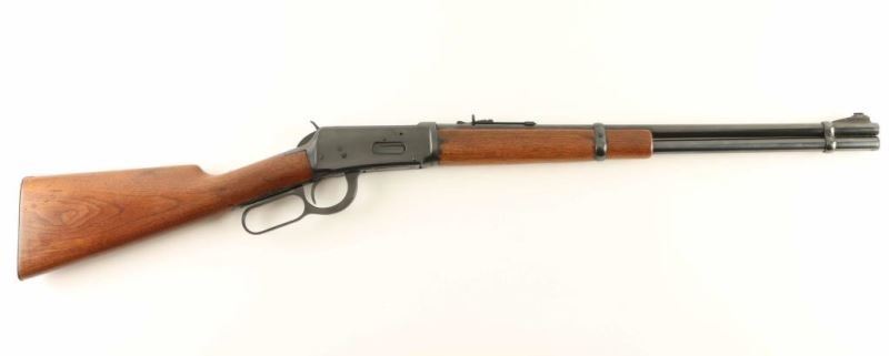Lever action rifle manufactured circa 1950. Features re-blued finish, wood forend & butt with straight grip, checkered steel buttplate, 20" barrel, buckhorn sights, full length magazine tube under barrel, exposed hammer. Bore is very good condition. Retains 95% re-blued finish with few visible pits under new finish, mostly smooth and even and dark. Wood is good serviceable condition, appears lightly sanded with good fit to metal, some oil staining, stamped "LL" on left of butt near comb. Condition is NRA Very Good as refinished *** C&R Firearm ***