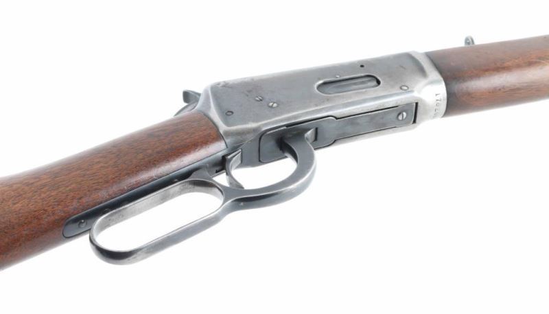 Rifle. Lever-action. Manufactured 1951. Carbine configuration. 20" round barrel with hooded, ramped, post/bead front, and u-notched rear sights. Winchester markings stamped on barrel. No tang markings, Barrel/receiver Winchester proofed. Action is crisp/tight. Bore appears excellent/bright. Blued metal finish is about 50% with handling loss mostly to the receiver/tang. Walnut stock/forearm are good with some loss of varnish/scratches. Checkered steel buttplate. NRA Condition-Good. Modern Firearm.