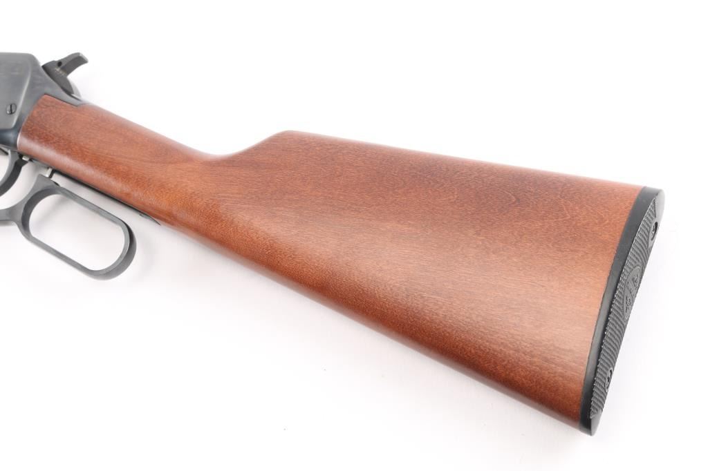 GOOD: Some minor replacement parts; metal smoothly rusted or lightly pitted in places, cleaned or re-blued; principal letters, numerals and design on metal legible; wood refinished, scratched bruised or minor cracks repaired; in good working order.