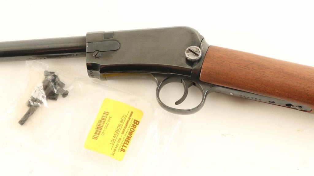 GOOD: Some minor replacement parts; metal smoothly rusted or lightly pitted in places, cleaned or re-blued; principal letters, numerals and design on metal legible; wood refinished, scratched bruised or minor cracks repaired; in good working order.