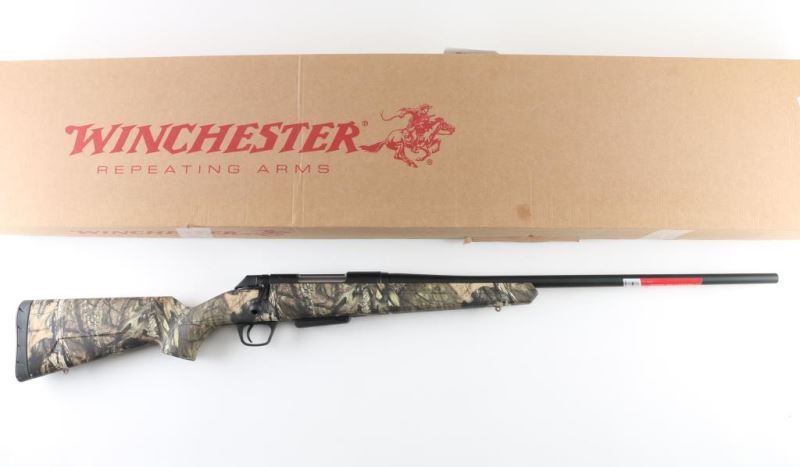 'Hunter' Modern push feed short-action bolt action sporting rifle chambered in .300 Winchester Short Magnum, manufactured in Viana, Portugal. The XPR is the first newly designed bolt action rifle debuted by Winchesters in over 50 years. Features a matte black Perma-Cote finish, free-floated sporter contour 24” precision button rifled barrel with 1:10 twist, factory drilled & tapped chromoly steel receiver, nickel Teflon coated chromoly steel bolt with 60 degree throw, two-position safety on the right side of the receiver with a bolt-unlock button, crisp M.O.A. Trigger System, 3 round detachable box magazine, sling swivel studs and Mossy Oak Break-Up Country pattern synthetic stock with textured grip panels, Inflex Technologies recoil pad & 13 3/4” LOP. Includes the original factory carboard box with manual and lock. Rifle exhibits no signs of use or wear. Condition is like NRA Perfect in box. ***Modern Firearm***