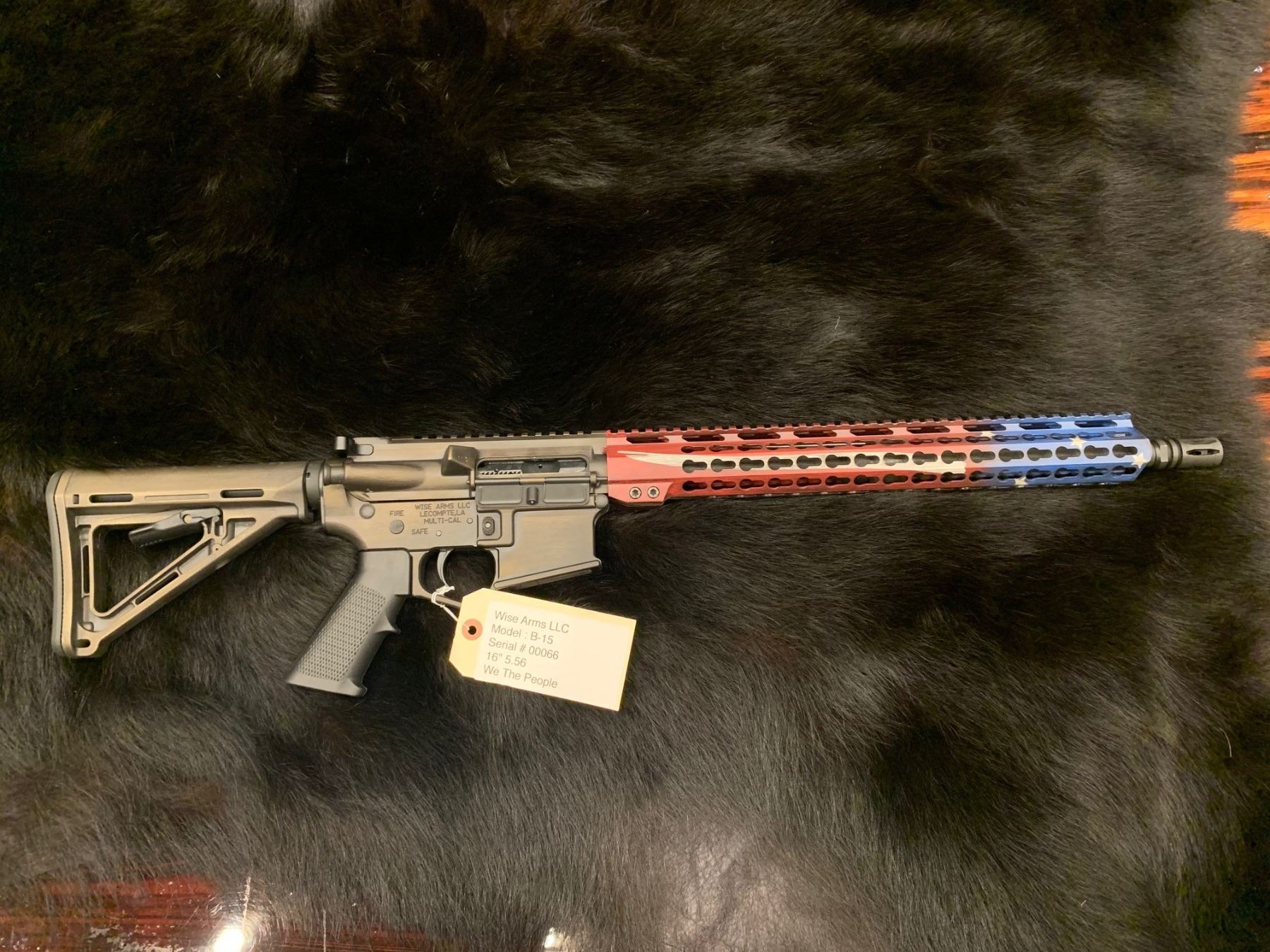 This is a special edition gun made by Wise Arms. Chamberes in 5.56 and cerakoted with a "we the people scene". This gun in new in the box and only test fired by the manufacture.
