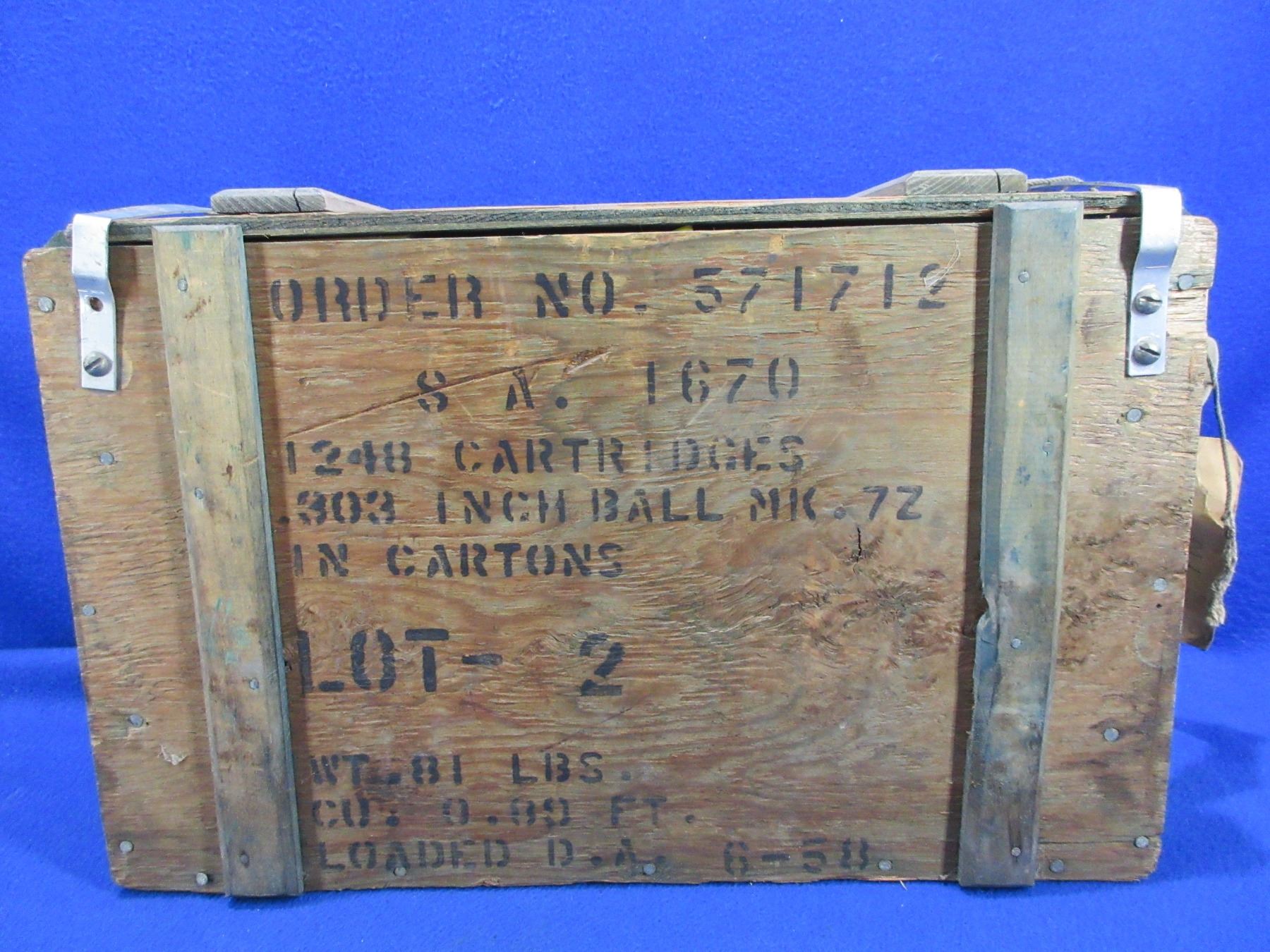 Wood Ammo Box with Lid and Empty Ammo Boxes - Wood Box Marked 303 Inch Ball Mark 7Z - 16 1/2' x 7 1/2" x 10 1/2" High