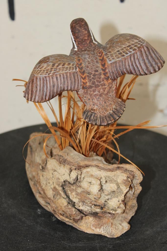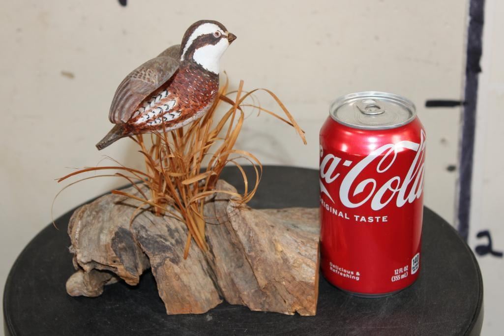 Wood Quail Carving Signed by Artist "Bo Jones" or "BD Jones". It measures 6.5" Long x 5.5" Wide x 7" Tall and Weighs: 10 oz. COLLECTIBLE TAXIDERMY ART