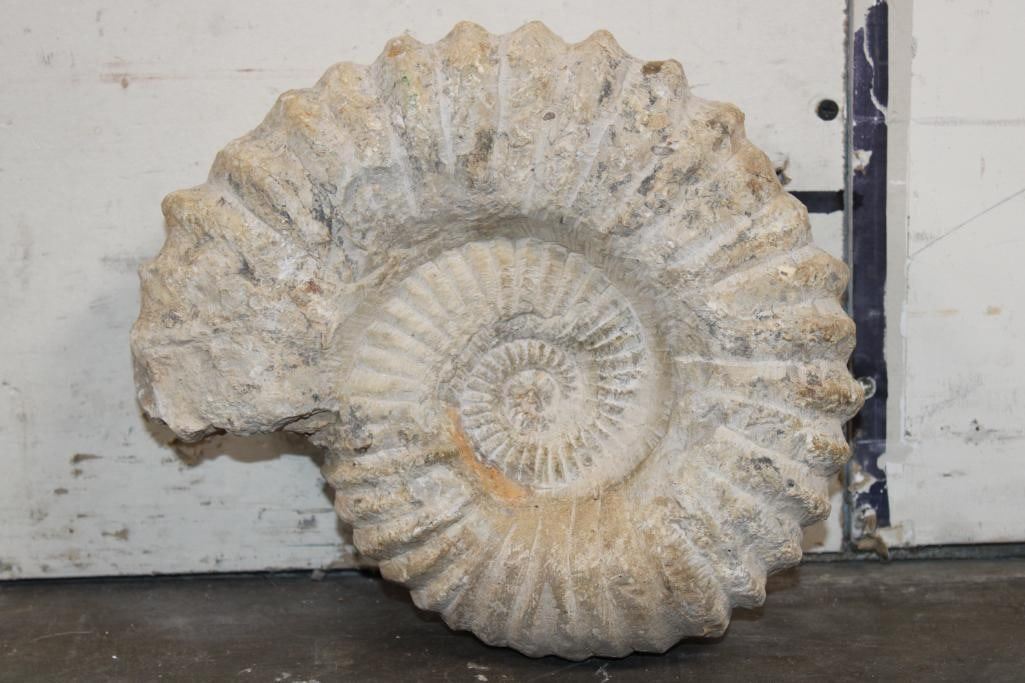 XL AMMONITE Fossil Specimen from Morocco. It measures 11" Long x 9.5" Wide x 4" Thick and the Total Weight is 16 lbs 13 oz. The Ammonite shells are well-preserved as fossils in marine sedimentary rocks such as limestone and clay. ROCKS MINERALS FOSSILS