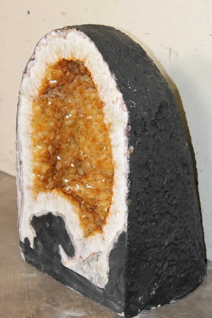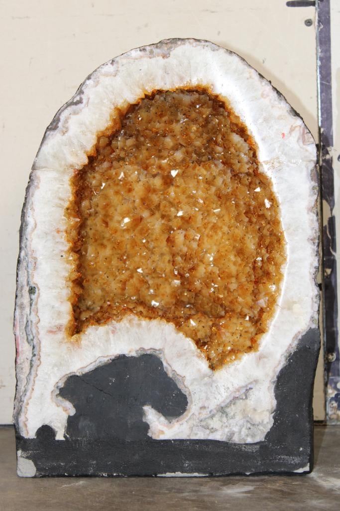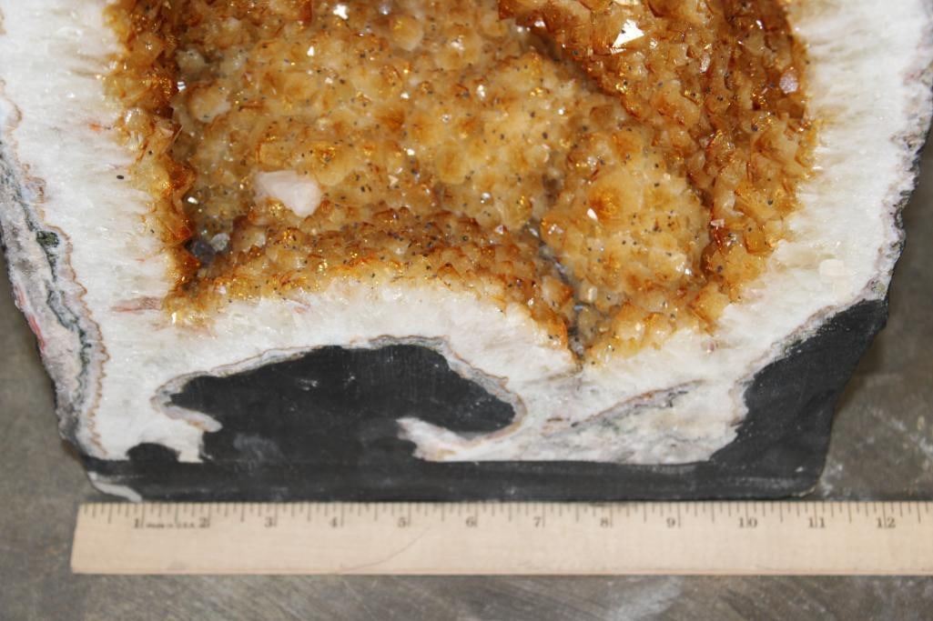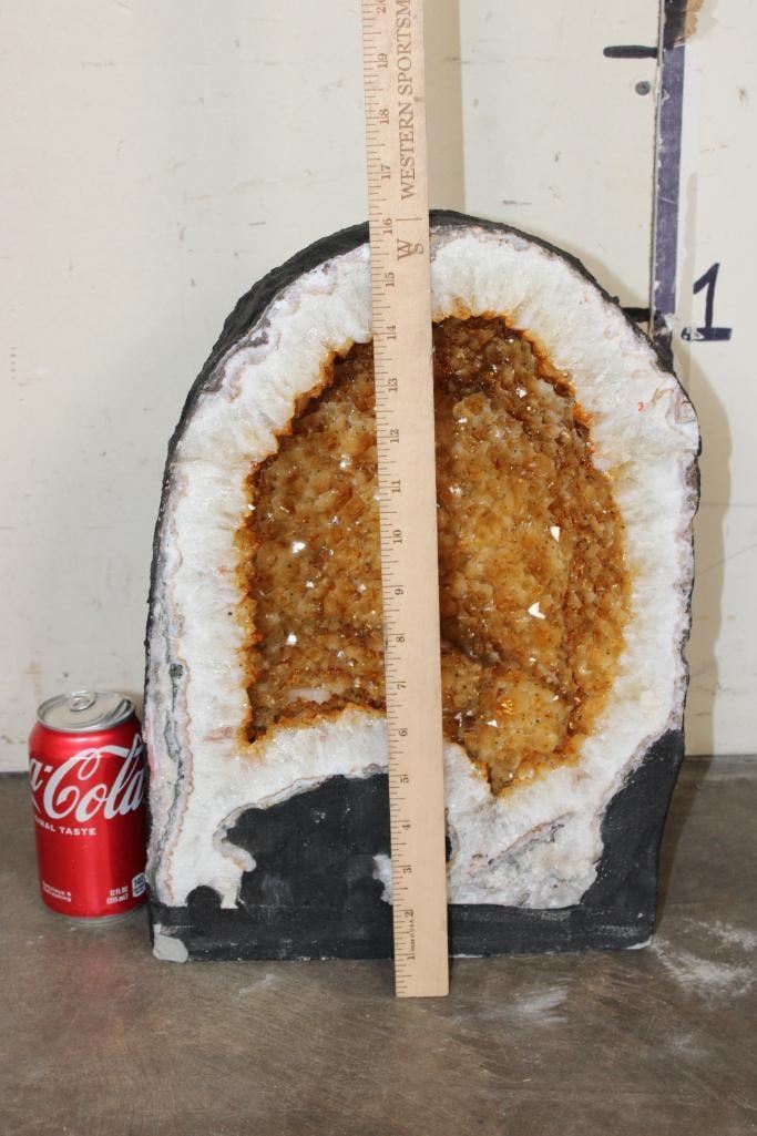 XL CITRINE Crystal Geode Cathedral. It measures 16" Tall x 11" Wide x 9.25" Depth and the Total Weight is 69.96 lbs or 31.8 kg. ROCKS FOSSILS MINERALS CRYSTALS