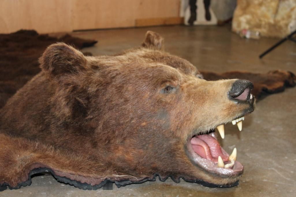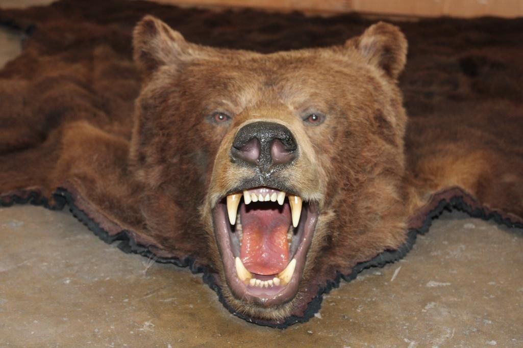 XL BROWN BEAR Rug with Its Mounted Head, Double Felt and Canvas Backing