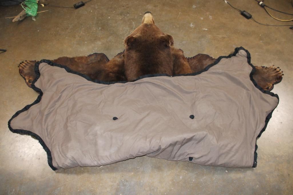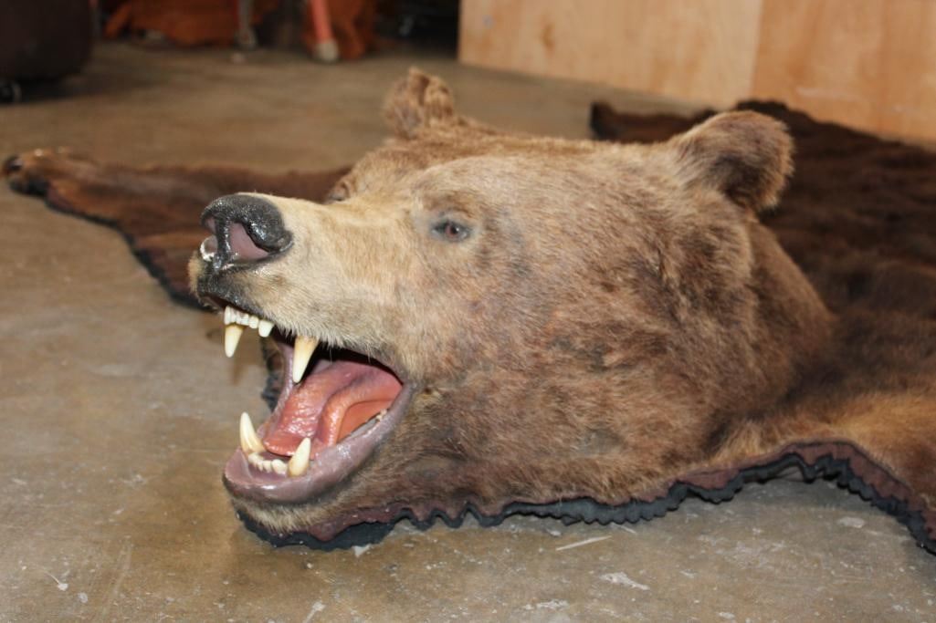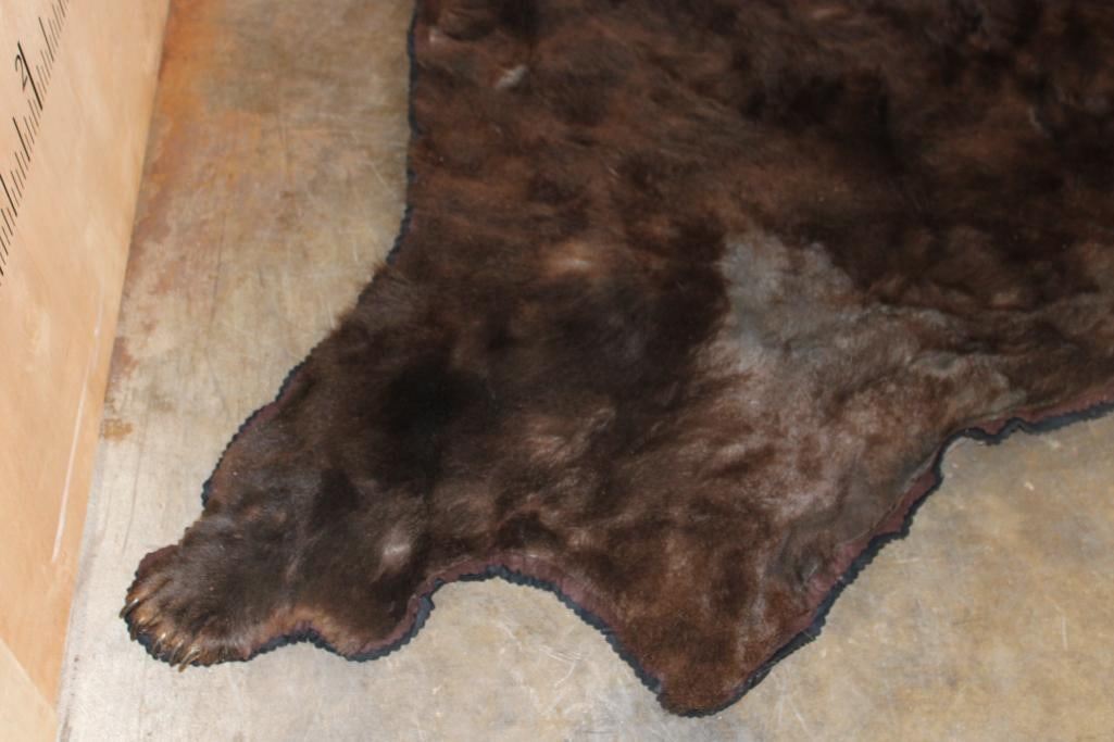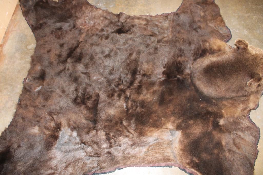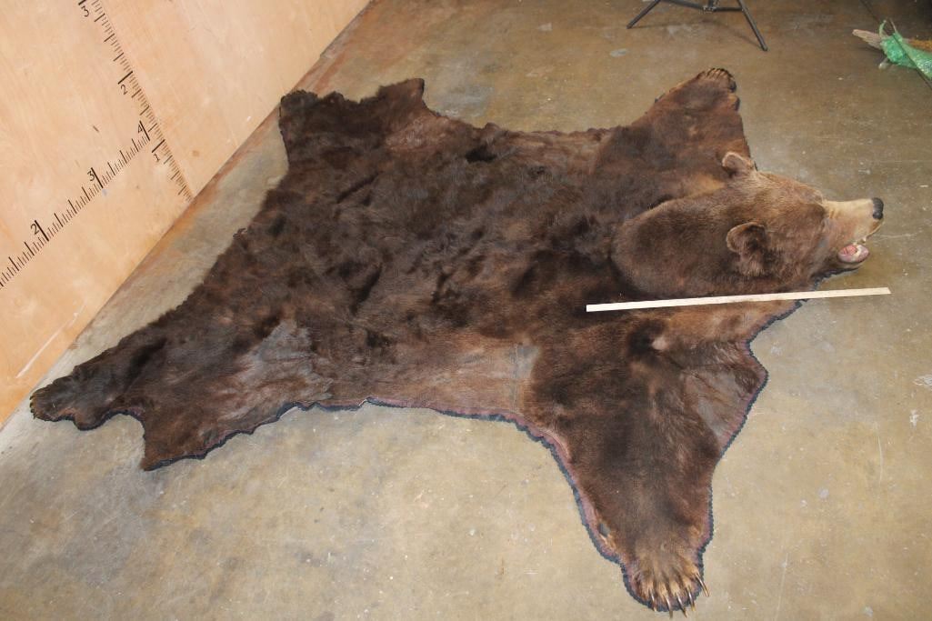 Very Nice, Newer, and Clean XL BROWN BEAR Rug mounted with its Head. It has All its Big Claws and measures 8' 7" Long x 8' 3" Wide. A thick Double Felt and Canvas have been added for Backing, plus Hanging Loops. This Brown Bear has a Great Face and is in Very Good Condition. TAXIDERMY RUGS