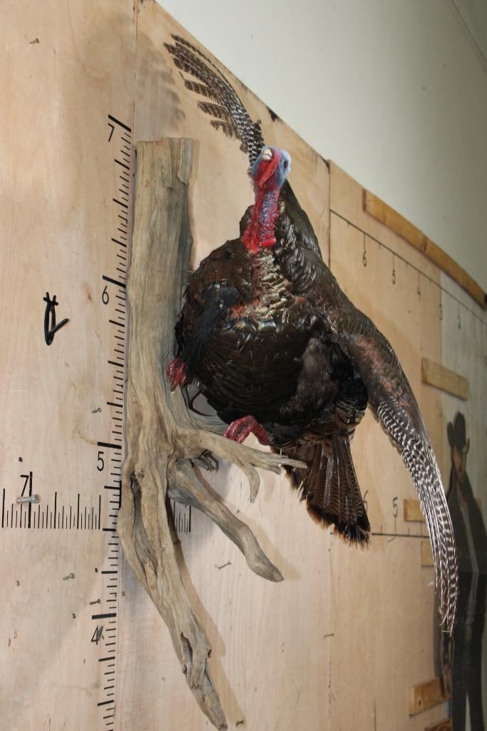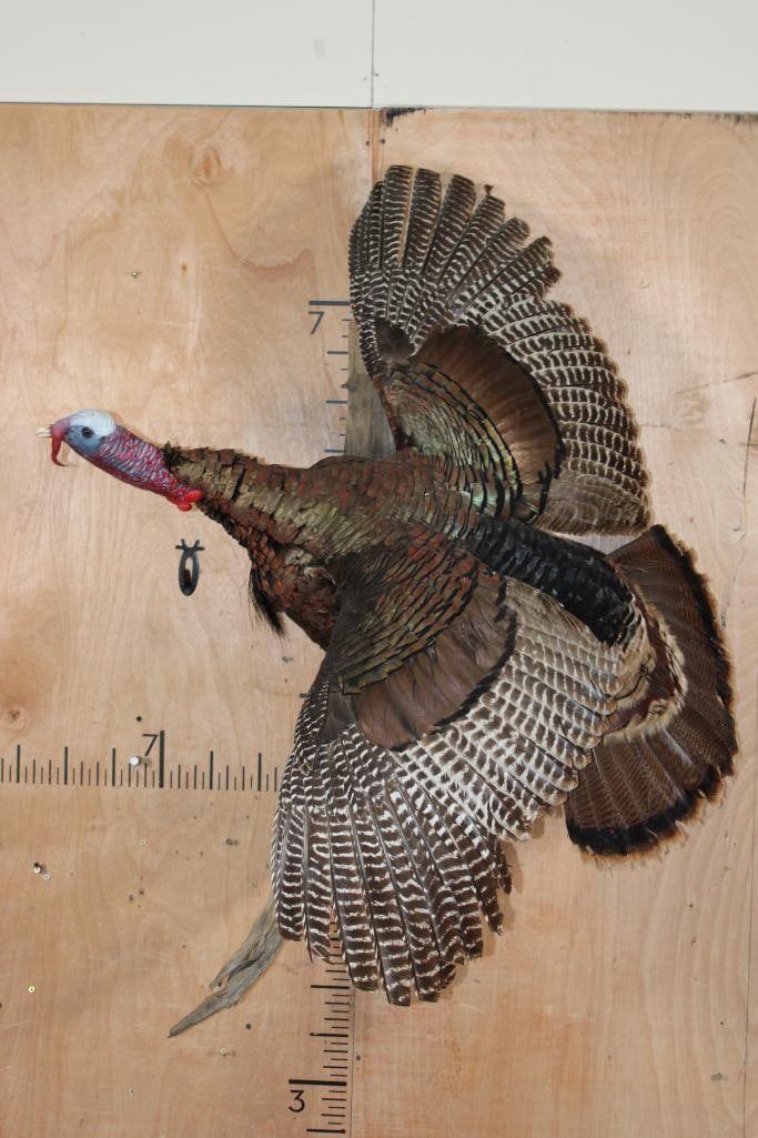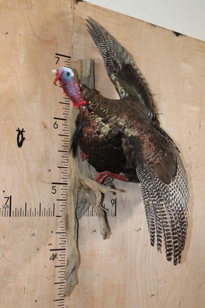 Very Nice, Clean and Newer XL Life-sized FLYING TURKEY on a Driftwood Wall Hanging Base. It measures 58" Tall x 31" Wide x 24" Depth. It weighed 24 lbs when "Taken" and is in Very Good Condition. TAXIDERMY BIRDS