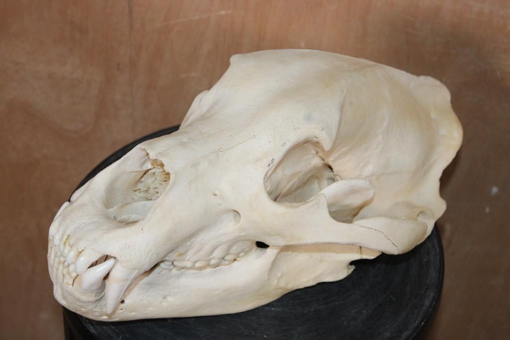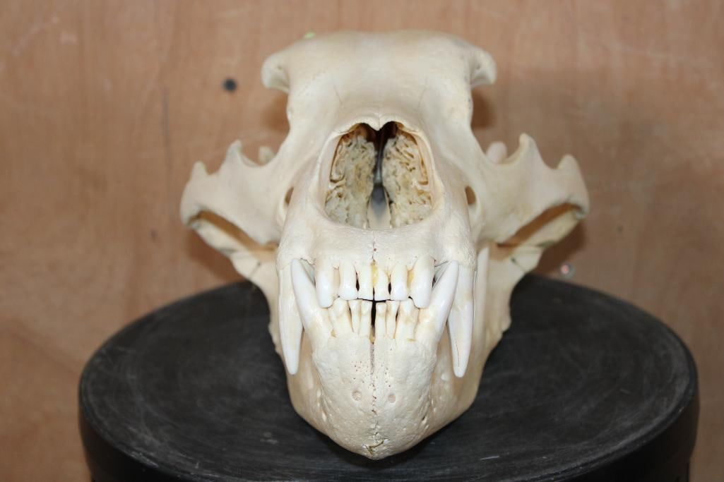 Very Nice A-Grade XL GRIZZLY or BROWN BEAR Skull. It has All its Teeth and a Wired Jaw (No Glue). The Skull measures 14.75" Long x 8.5" Wide. TAXIDERMY SKULLS