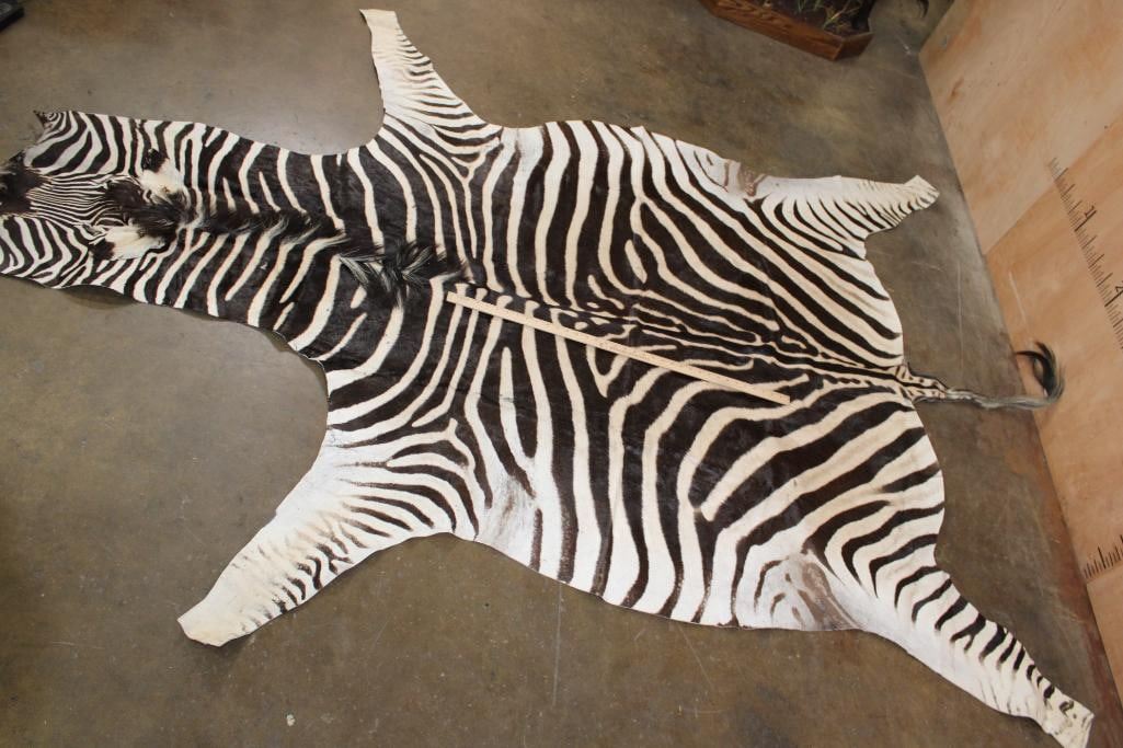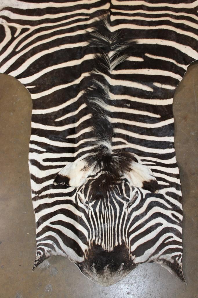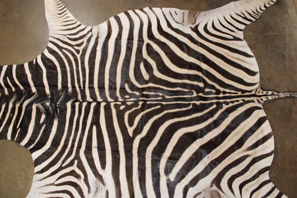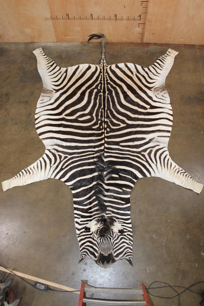 Very Nice and Clean XL ZEBRA Hide or ZEBRA Rug. It measures 115" Long x 83" Wide and has vibrant stripes. It is in *Like New* Condition. TAXIDERMY RUGS