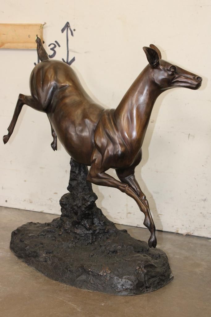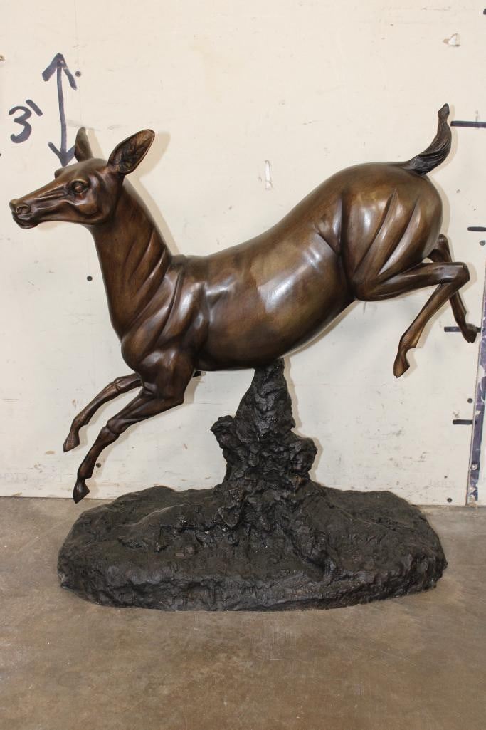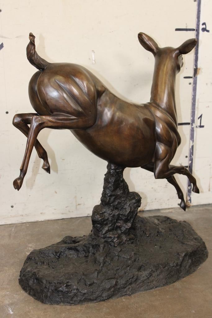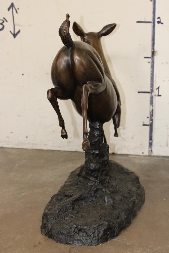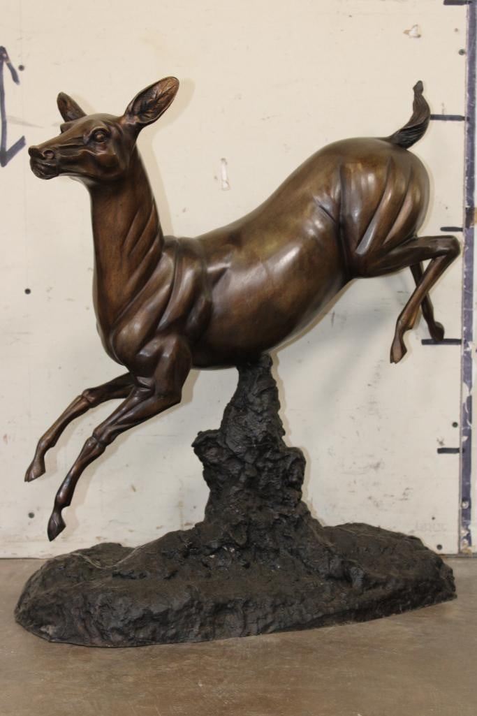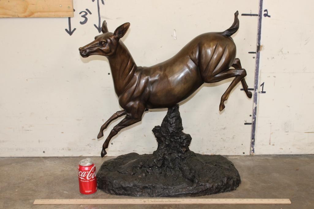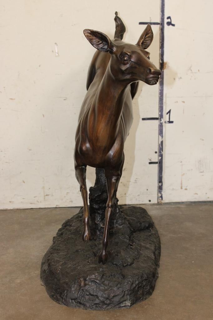 XL WHITETAIL DOE Deer Bronze. It measures 25" Long x 13" Wide x 26" Tall. The Total Weight is 36 lbs 4 oz. COLLECTIBLE BRONZE ART SCULPTURES AND STATUES