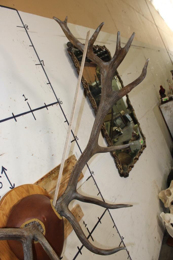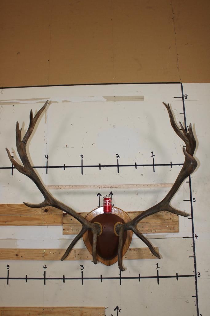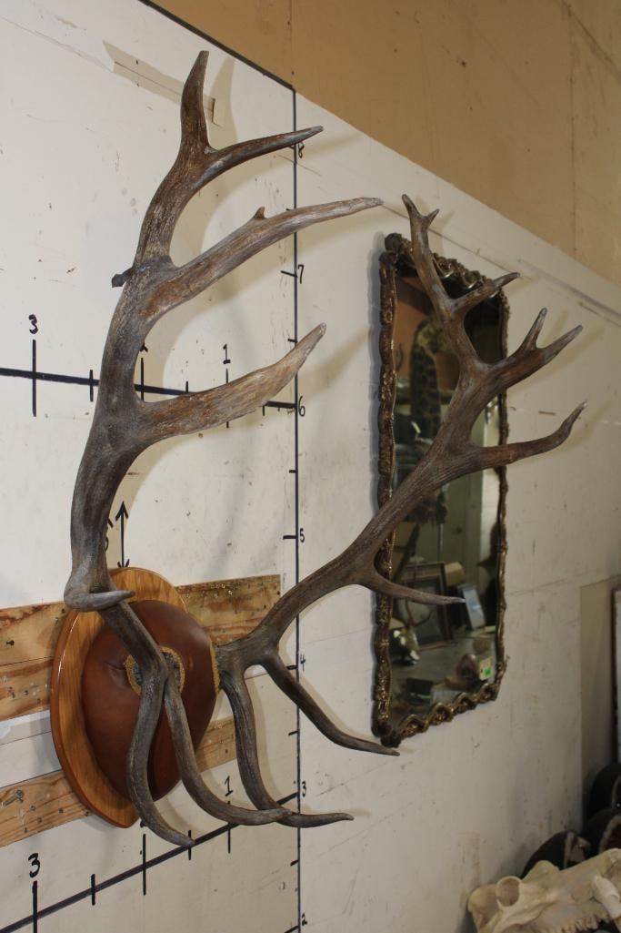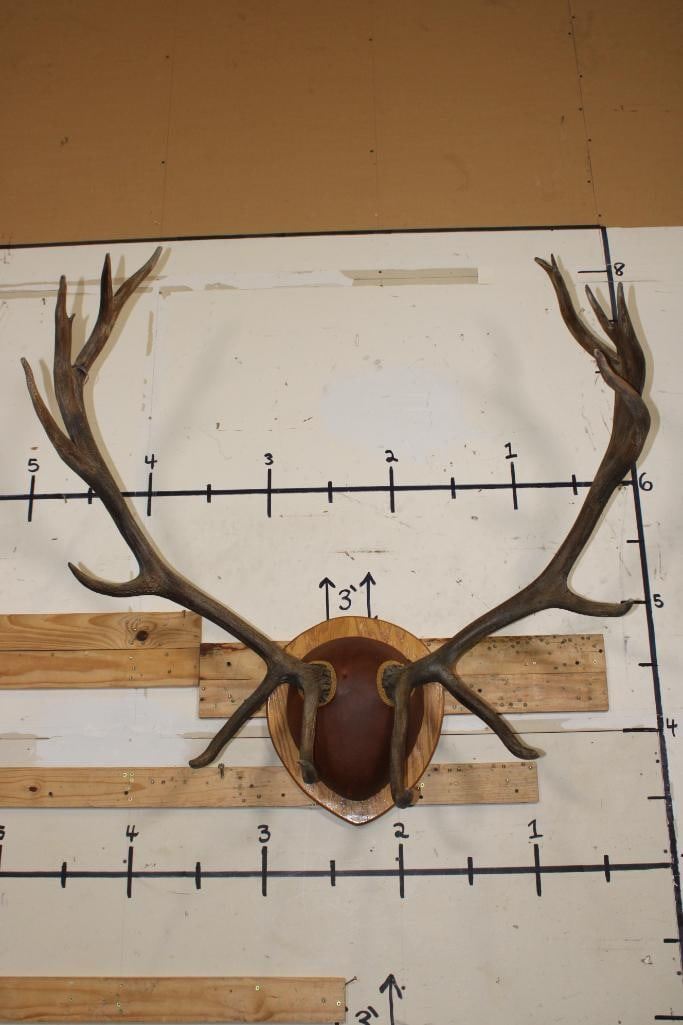 XXL 17-Point ELK Rack mounted on a Wooden Plaque. It has a 47" Spread and is in Good Condition. TAXIDERMY