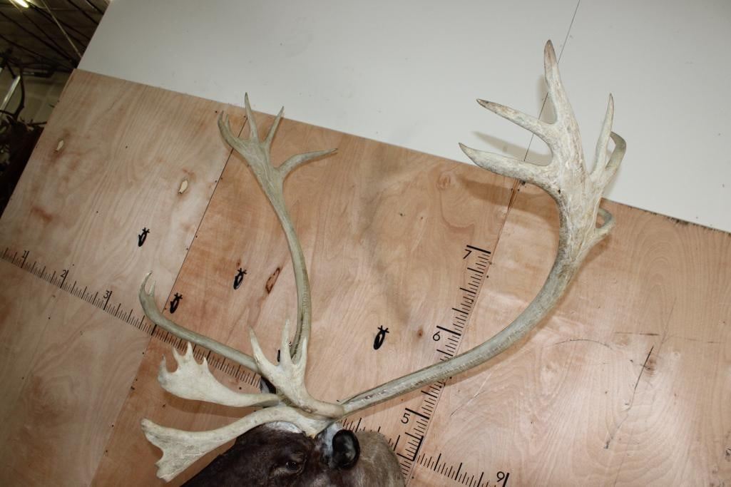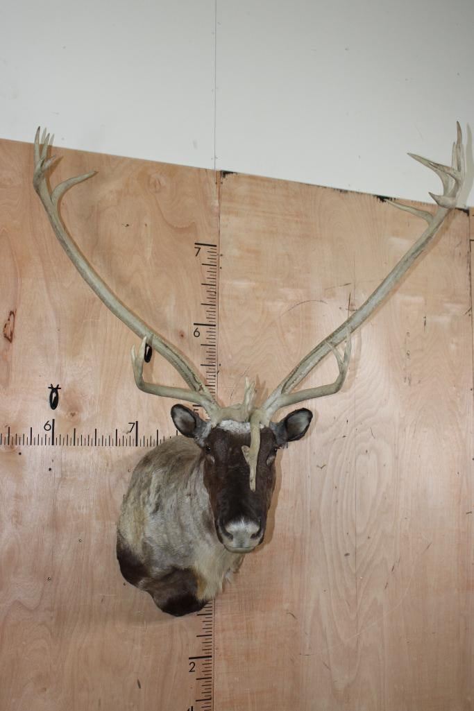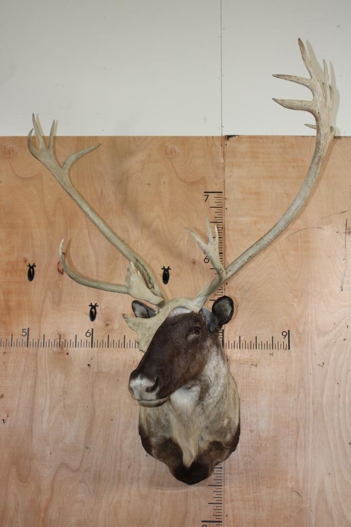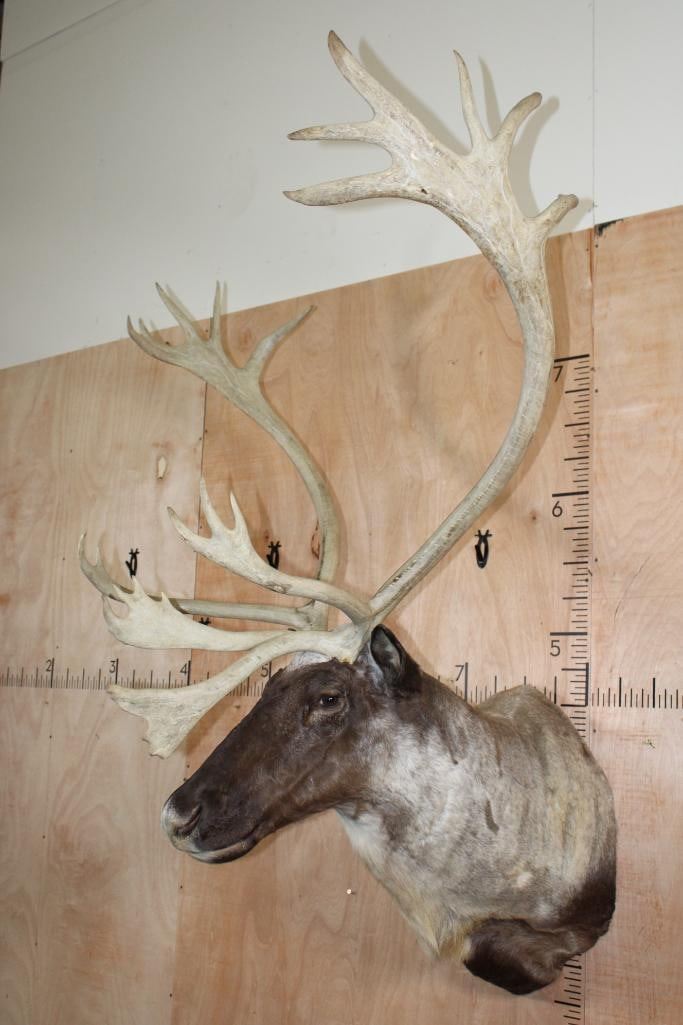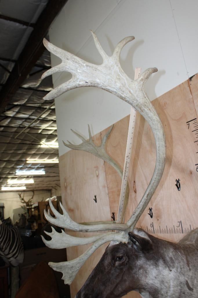 Very Nice, Clean, and Newer XXL 22-Point Double Shovel CARIBOU Shoulder Mount. It has a 50.5" Spread and is in Very Good Condition. TAXIDERMY