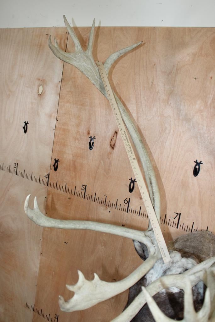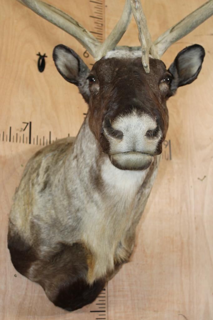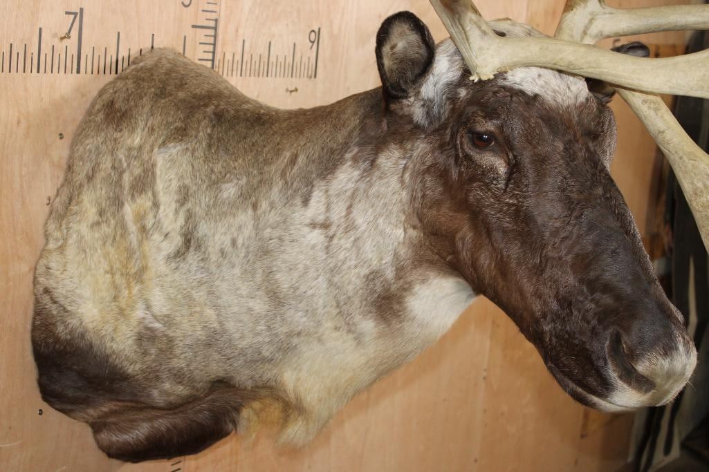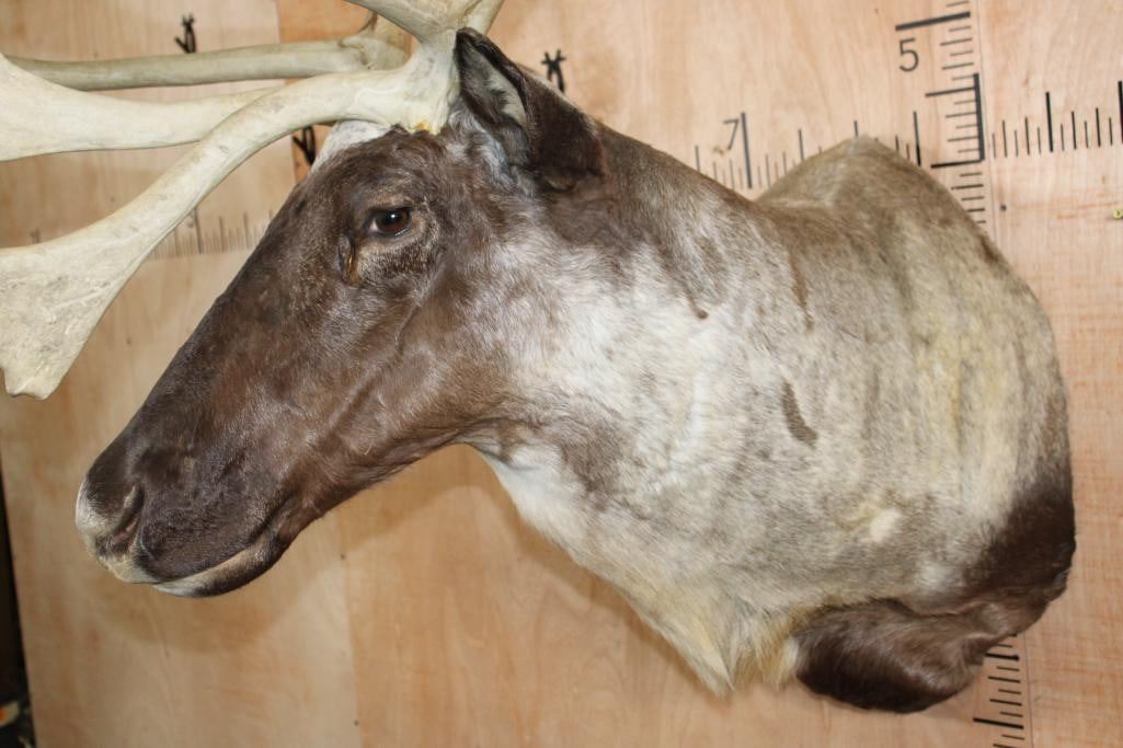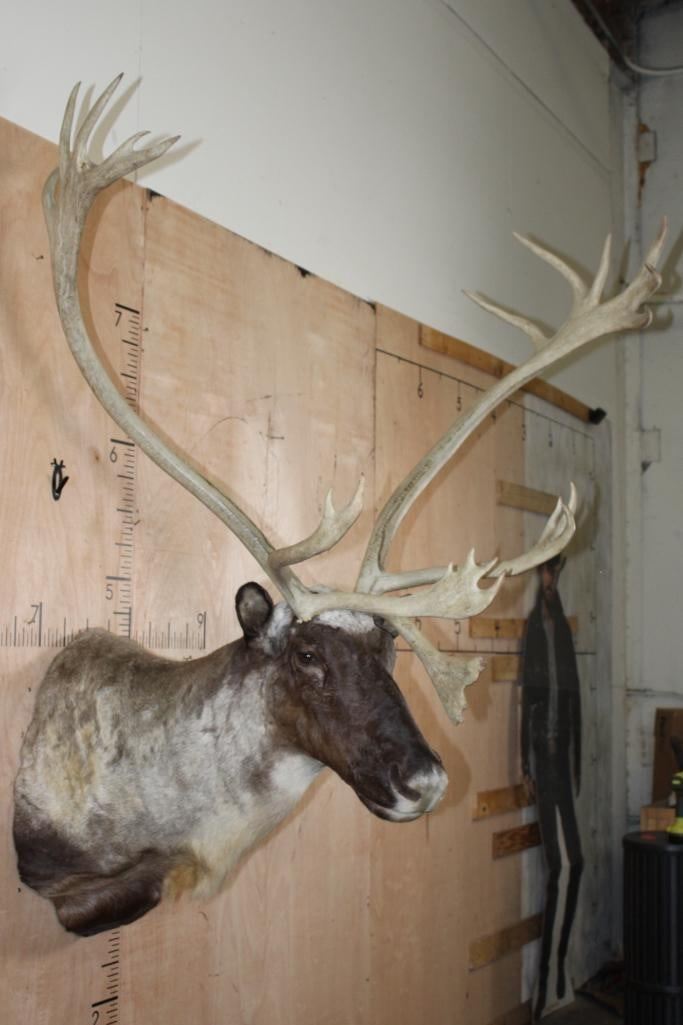 Very Nice, Clean, and Newer XXL 22-Point Double Shovel CARIBOU Shoulder Mount. It has a 50.5" Spread and is in Very Good Condition. TAXIDERMY