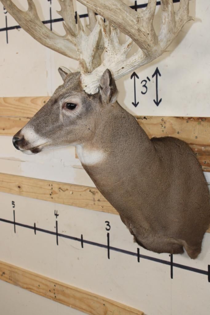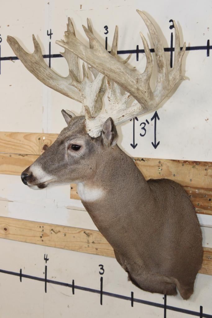 Very Nice, Clean, and Newer XXL WHITETAIL DEER Shoulder Mount. It has 28-Points and a 29.25" Spread with a Heavy Rack. It is in Very Good Condition. TAXIDERMY