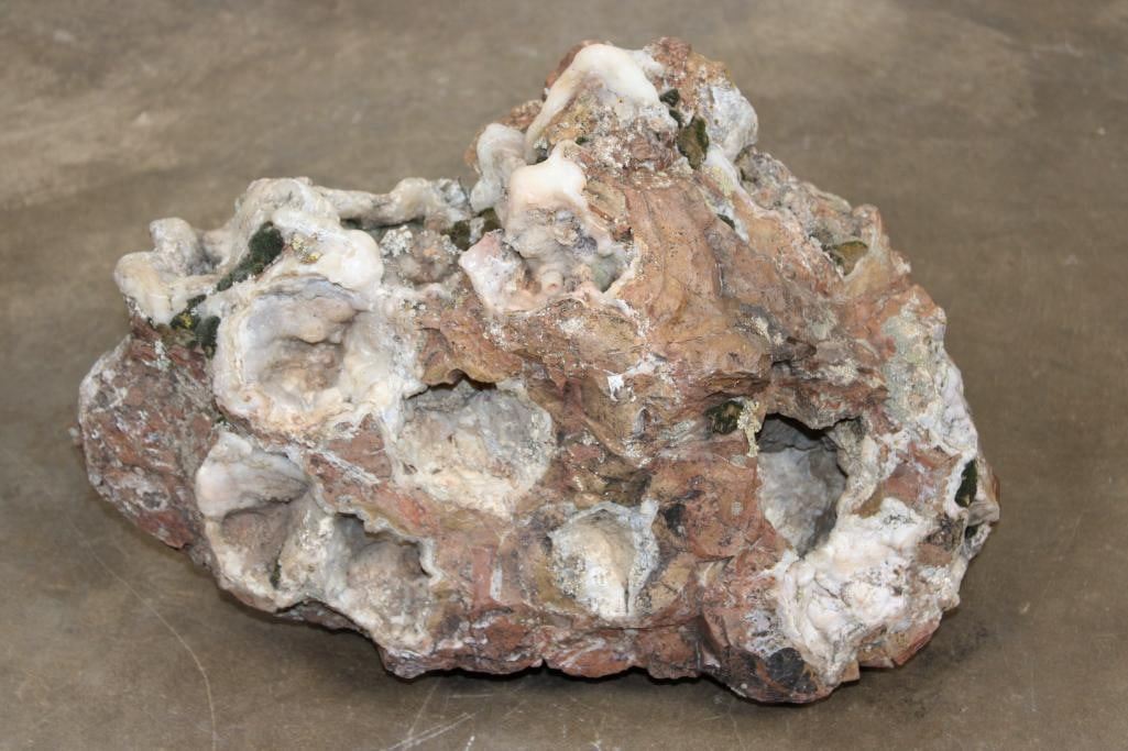 XXL Natural CHALCEDONY with Druzy Quartz Crystal Specimen. This is a Natural and Raw Specimen. It measures 17" Long x 10" Wide x 11" Tall and Weighs 46 lbs 6 oz. Chalcedony is often associated with promoting peace, healing, and emotional balance. ROCKS FOSSILS MINERALS CRYSTALS