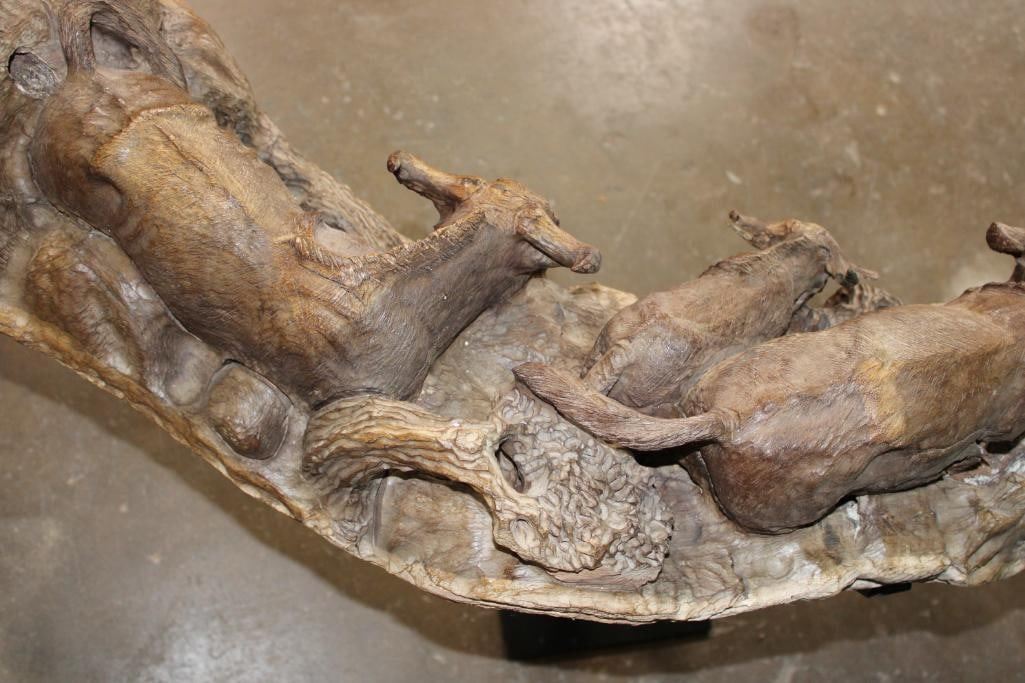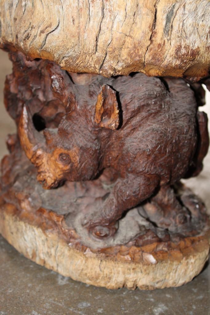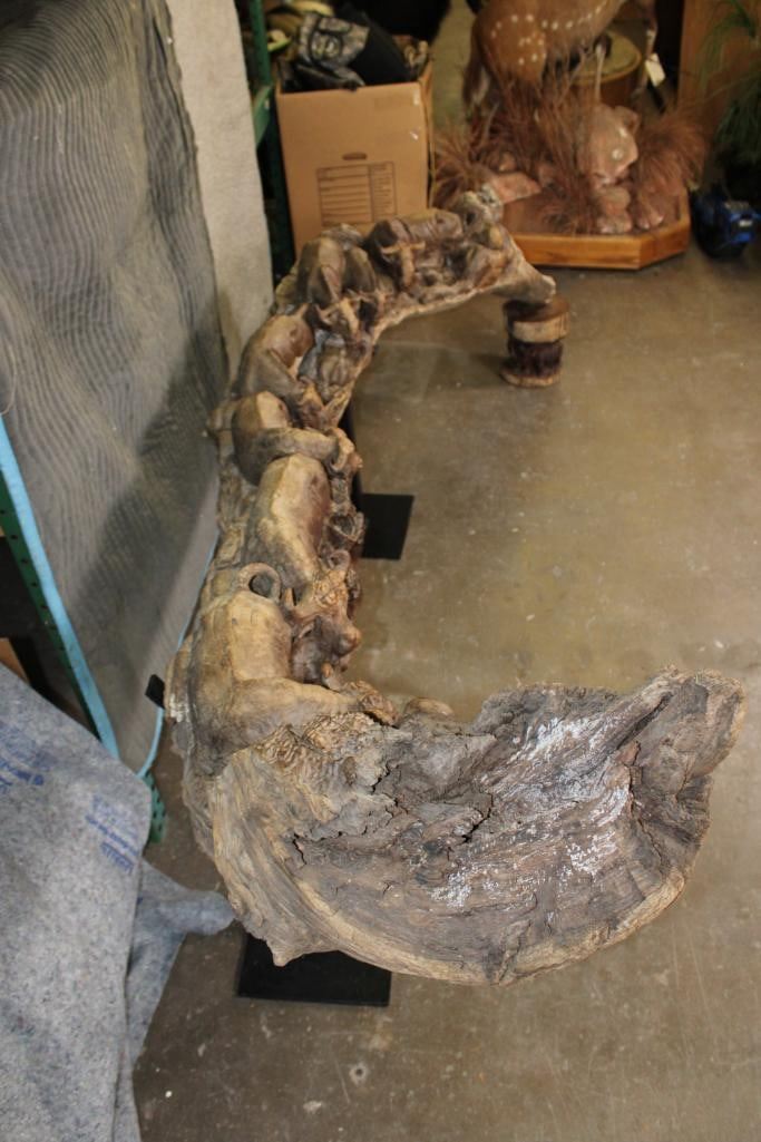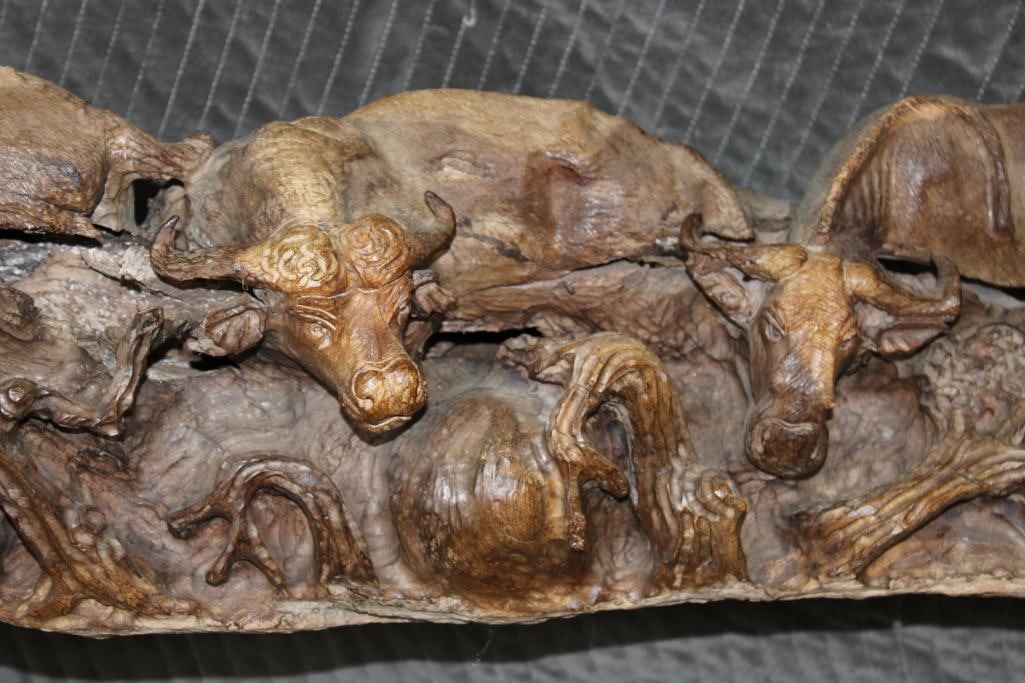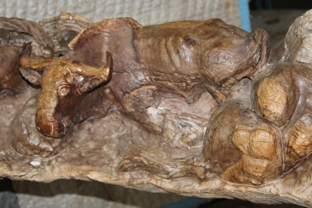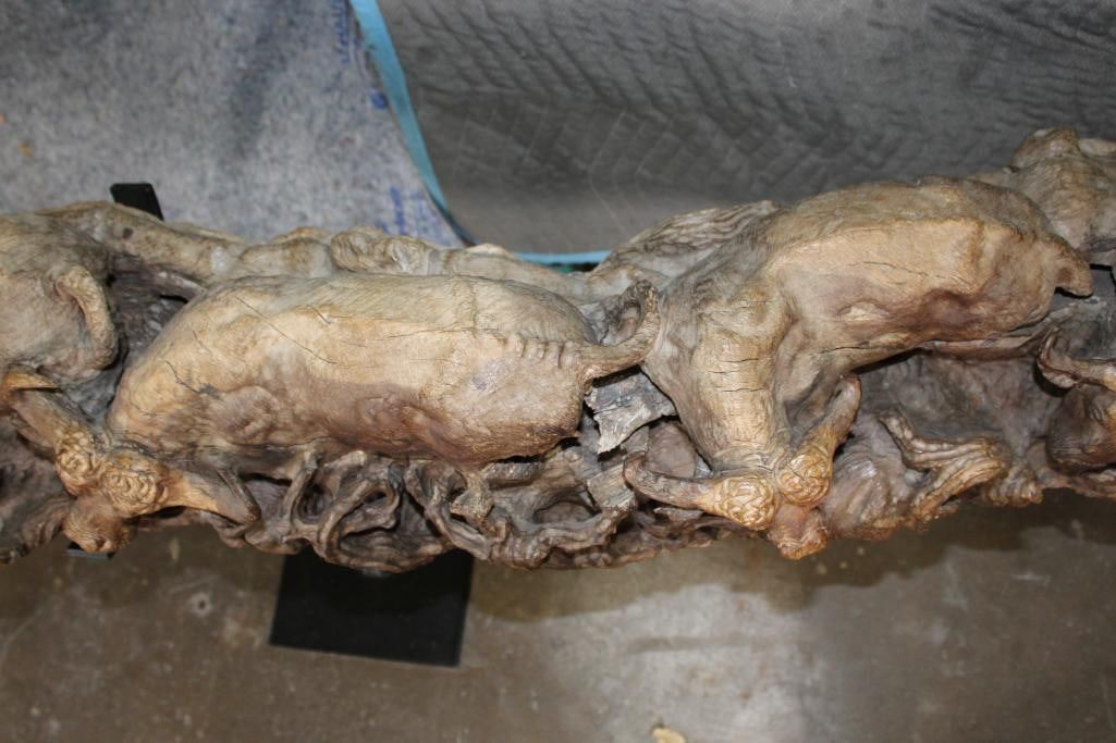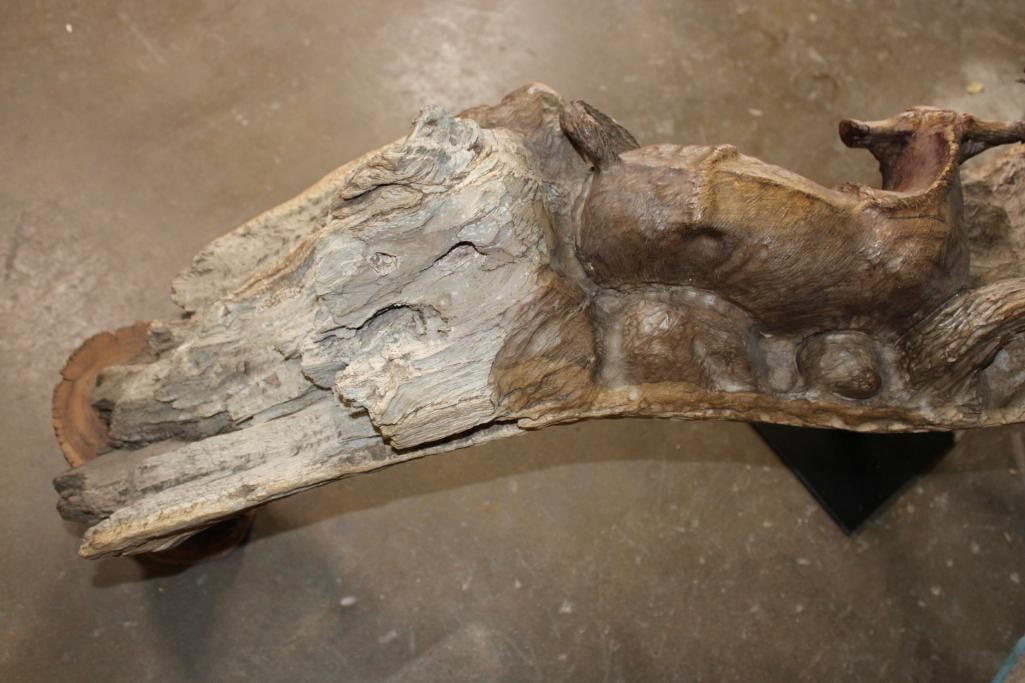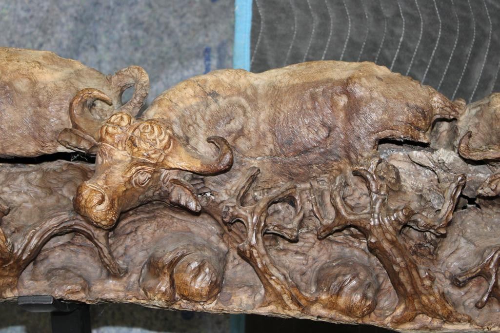 XXL 8' 10" Long Original Leadwood Carving of 3 CAPE BUFFALO and 4 WILDEBEEST by African artist Robert Nzali. The Sculpture has been masterfully carved from a single piece of a leadwood tree and measures 8'10" Long x 12" Thick x 48" Tall. It has been mounted on a Custom 2 piece Metal Stand Base with the 3rd Leg being part of the Leadwood sculpture. The sculpture is removable from the Base. COLLECTIBLE AFRICAN ART CARVINGS AND SCULPTURES *This item was sold in our last auction. The buyer did not pay, it is being resold*.