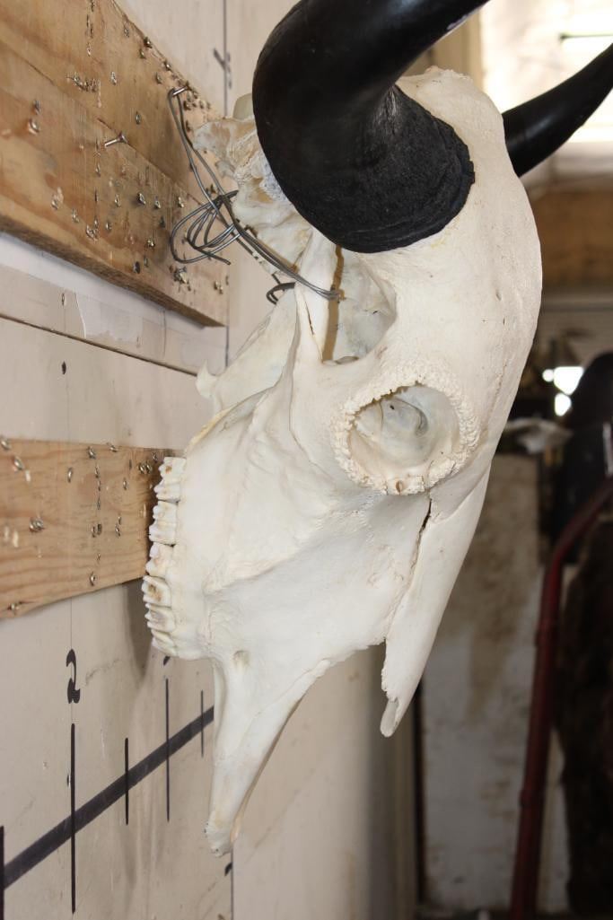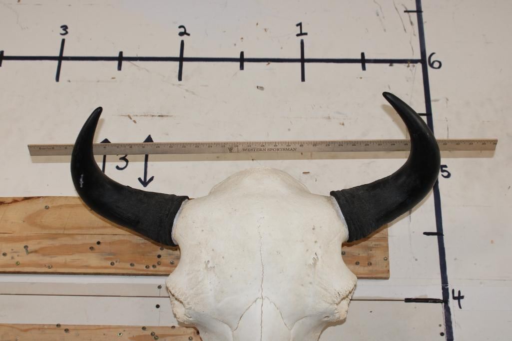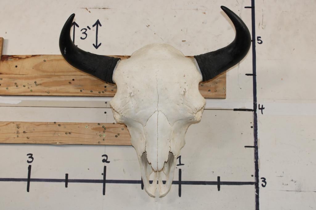 XXL BISON/BUFFALO Skull with a Wire Hanger. It has a 28" Spread and is missing one tooth. TAXIDERMY