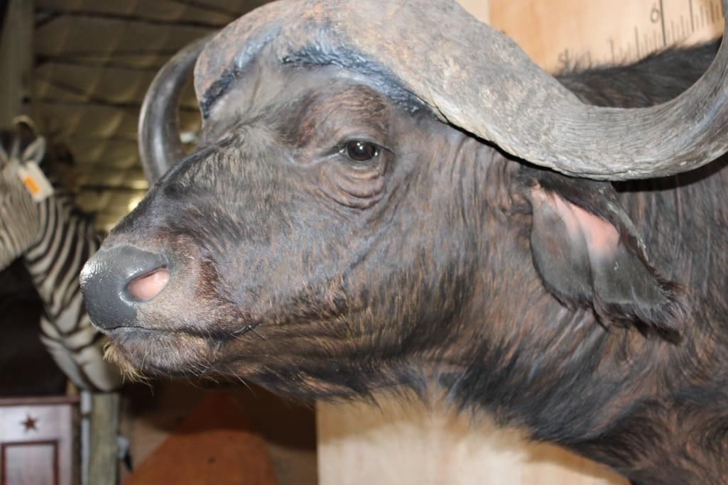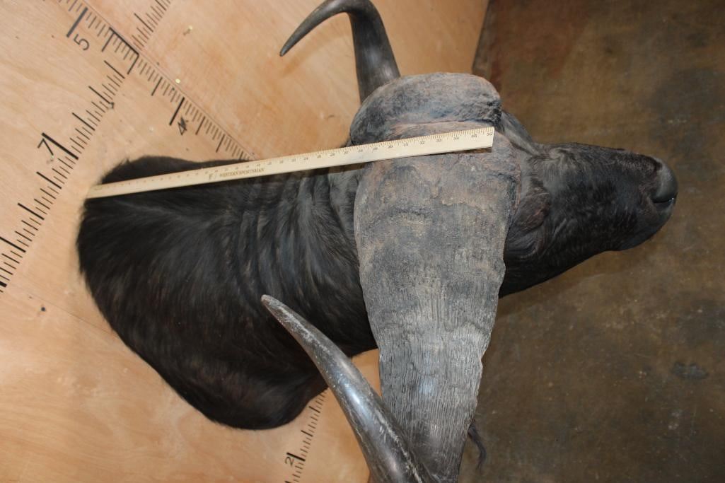 Very Nice, Newer, and Clean XXL CAPE BUFFALO "Dagga Boy" Shoulder Mount. It has a 41.75" Spread and each Boss measures 14" Around. It is in Very Good Condition. TAXIDERMY
