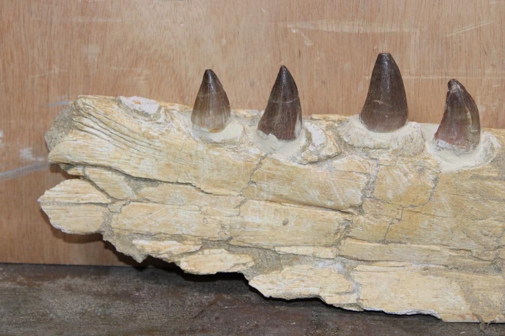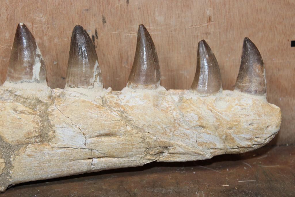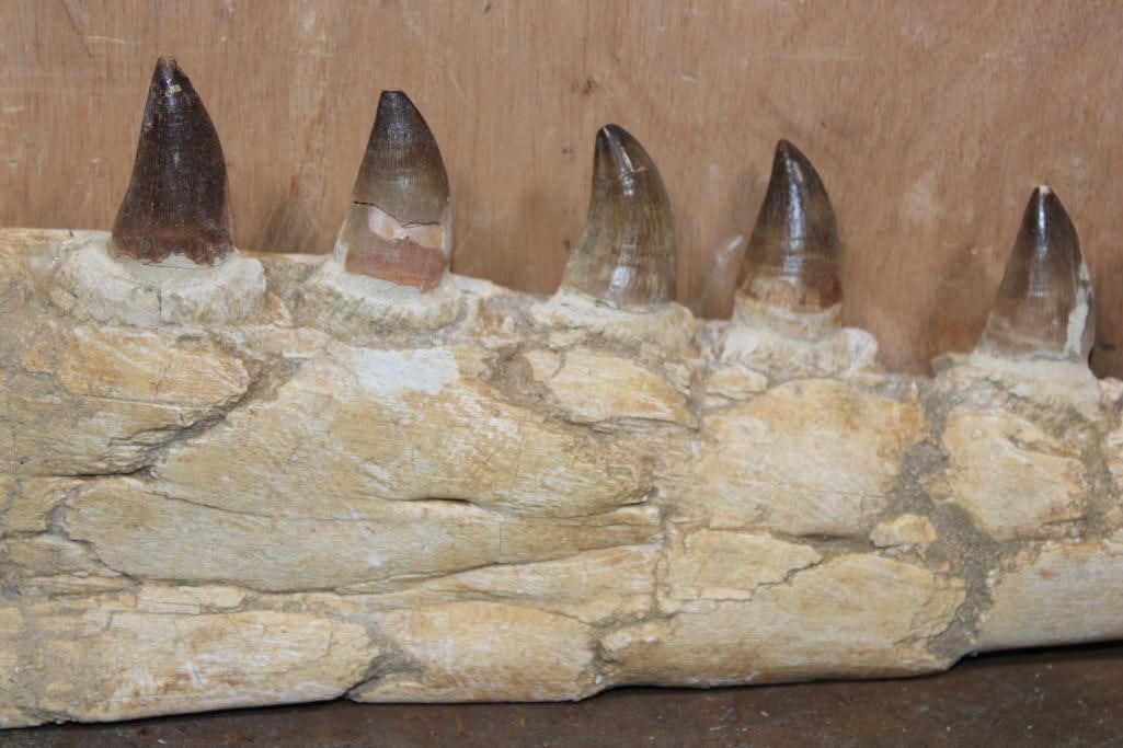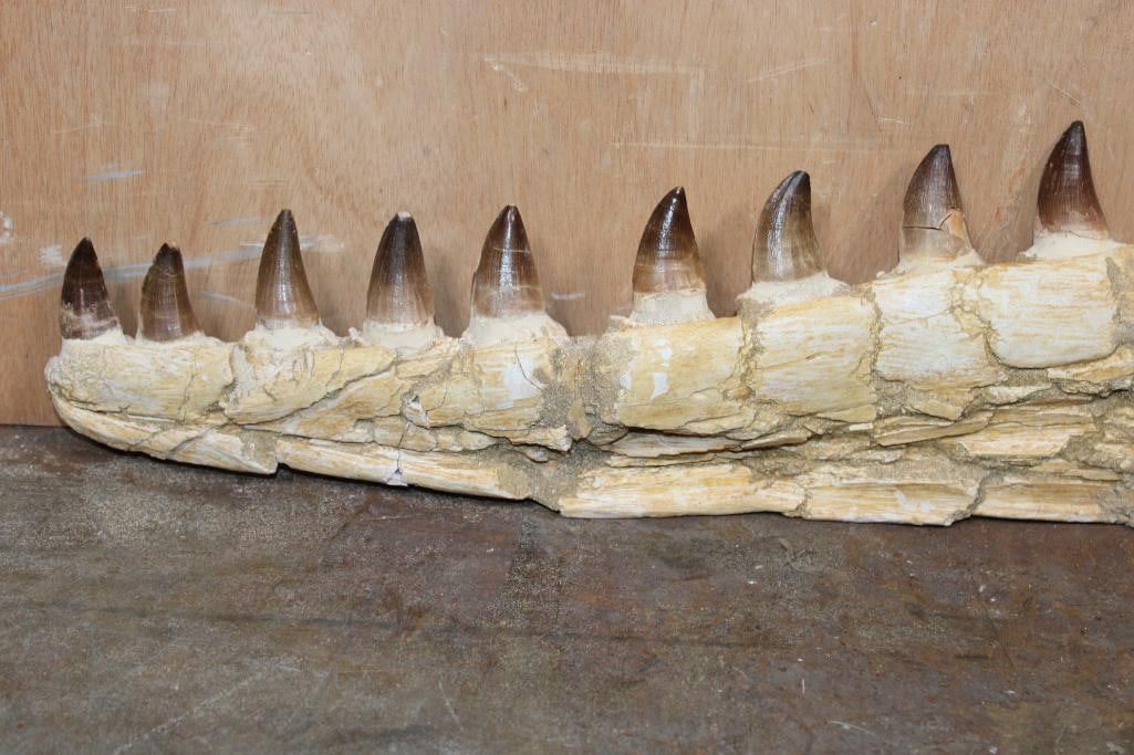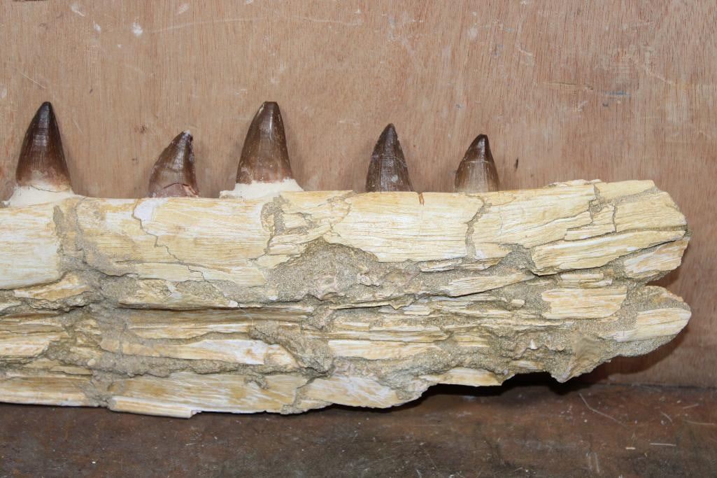 XXL Fossilized MOSASAUR Jaw Section with 13 Fully Rooted Teeth