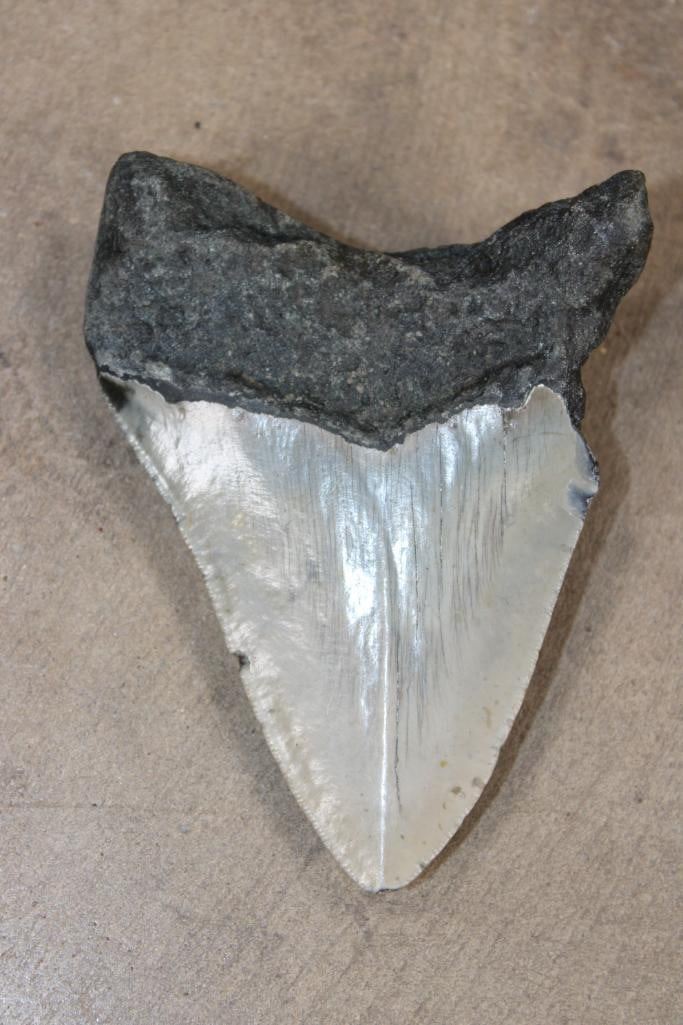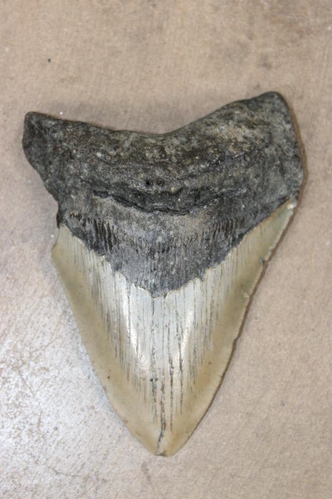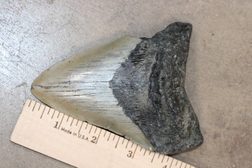 XXL MEGALODON SHARK Tooth Fossil. It measures 4.5" Long x 3 3/8" Wide and Weighs 194.87 g or 6.874 oz. Megalodon teeth are the largest shark teeth ever discovered, reaching lengths of up to 7". ROCKS MINERALS FOSSILS SHARK TEETH