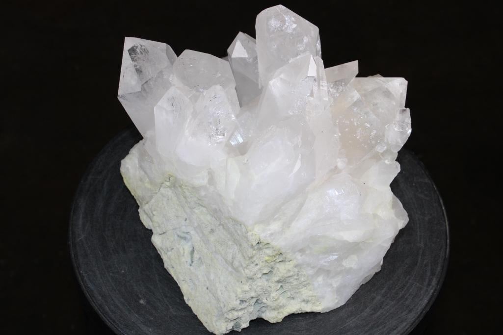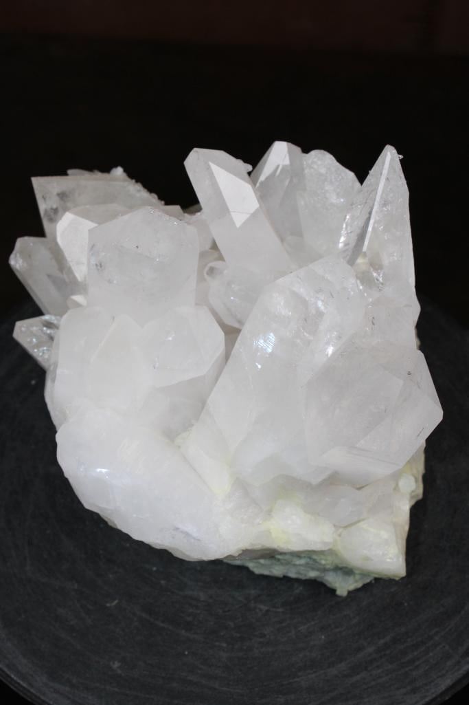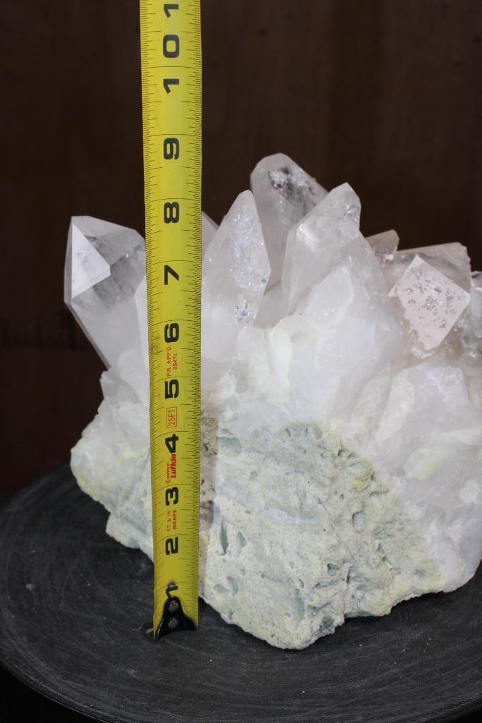 XXL Natural Arkansas CLEAR QUARTZ Crystal Specimen with Green CHLORITE. It measures 9.5" Long x 9" Wide x 8" Tall and the Total Weight is 17 lbs 8 oz. There are multiple big sharp points. Arkansas is world-renowned for its mined quartz crystals, especially from the Oachita Mountains near Mount Ida (the "Quartz Capital") and Hot Springs. ROCKS MINERALS CRYSTALS