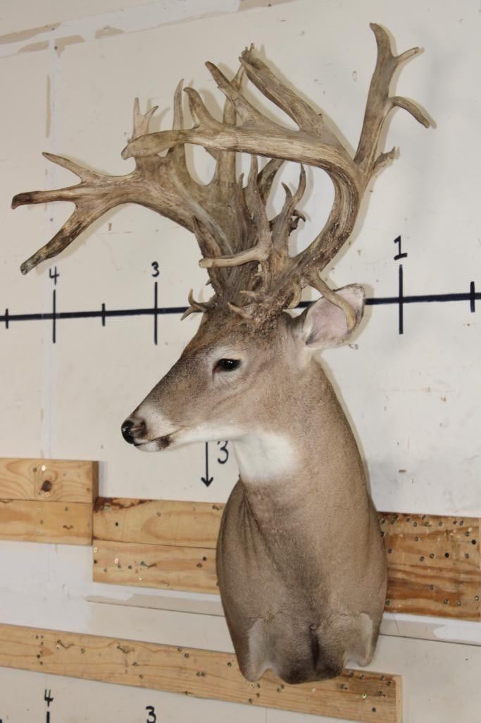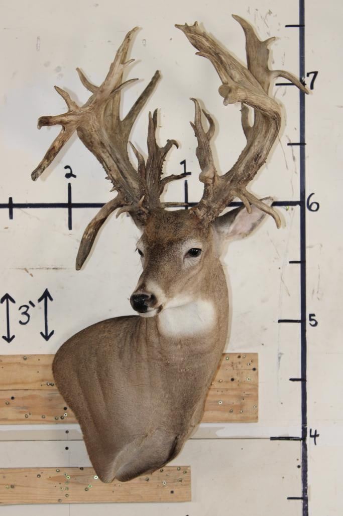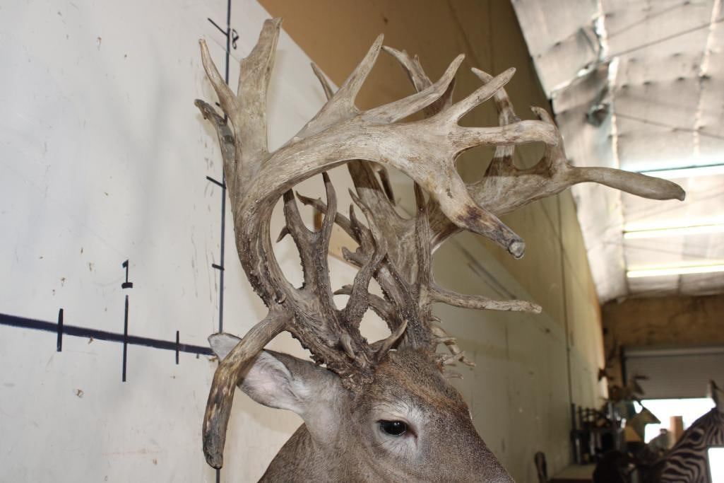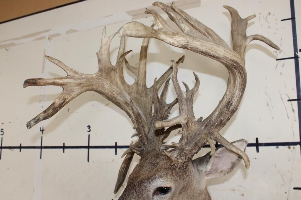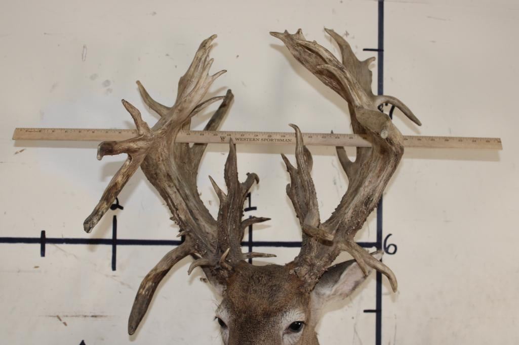 Nice, Newer XXL Non-Typical 44-Point WHITETAIL DEER Wall Pedestal in Good Condition. It has a Tall Basket and a 22" Spread. ODDITIES AND CURIOSITIES TAXIDERMY