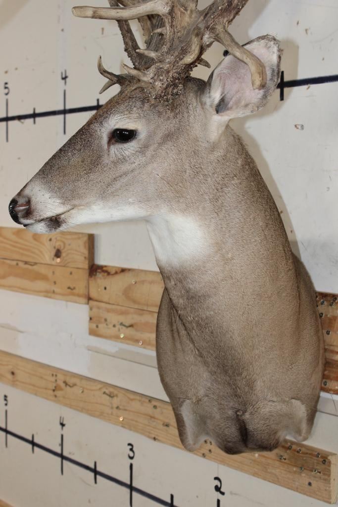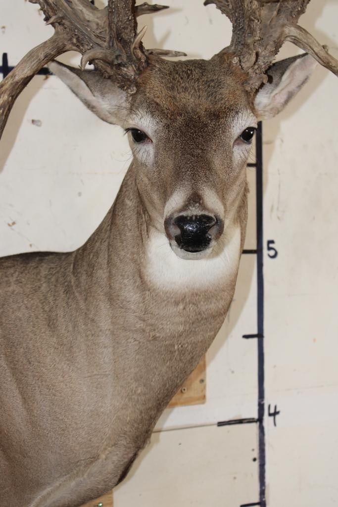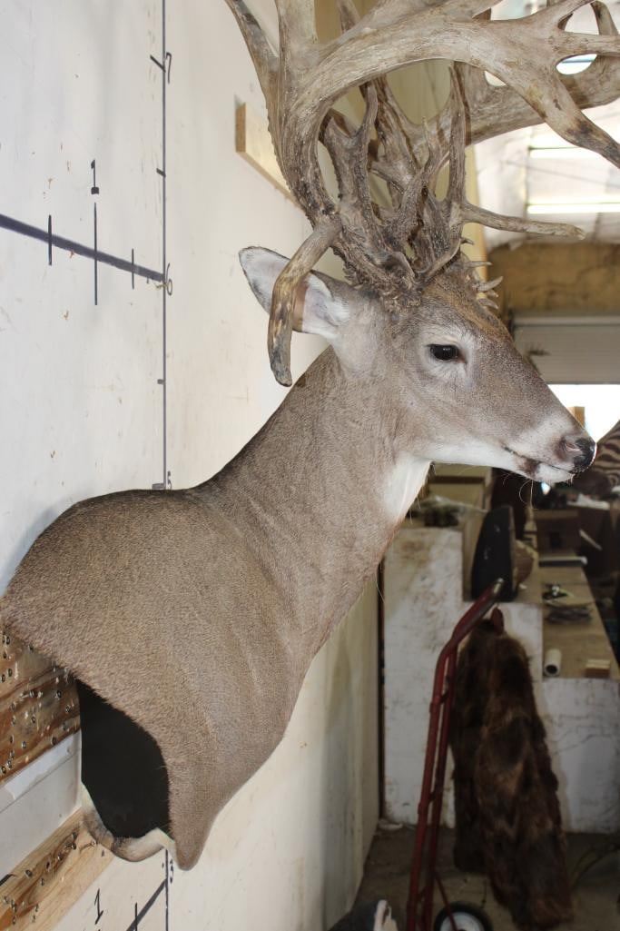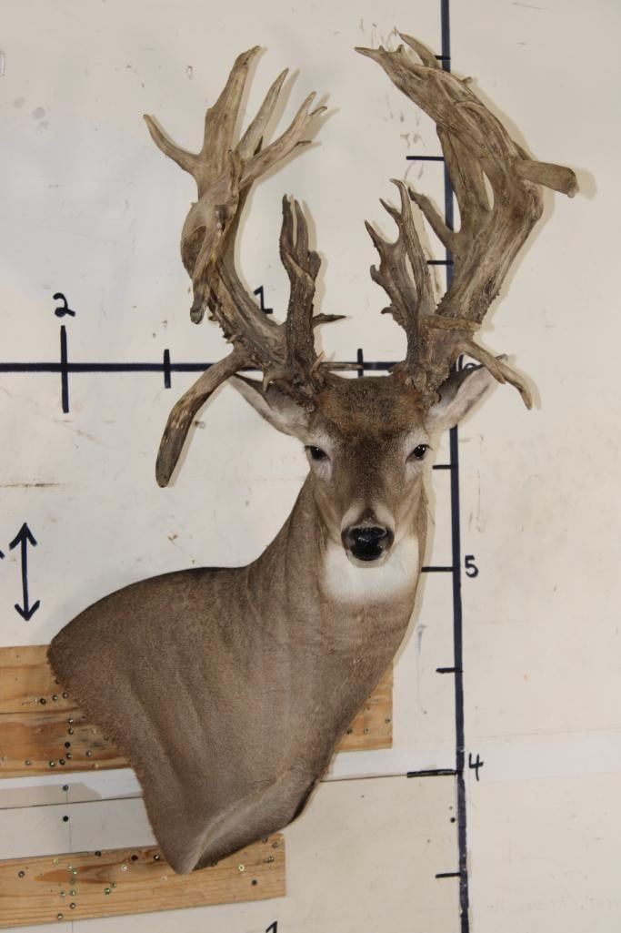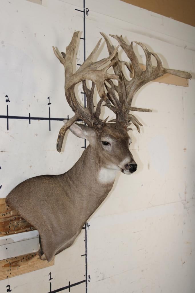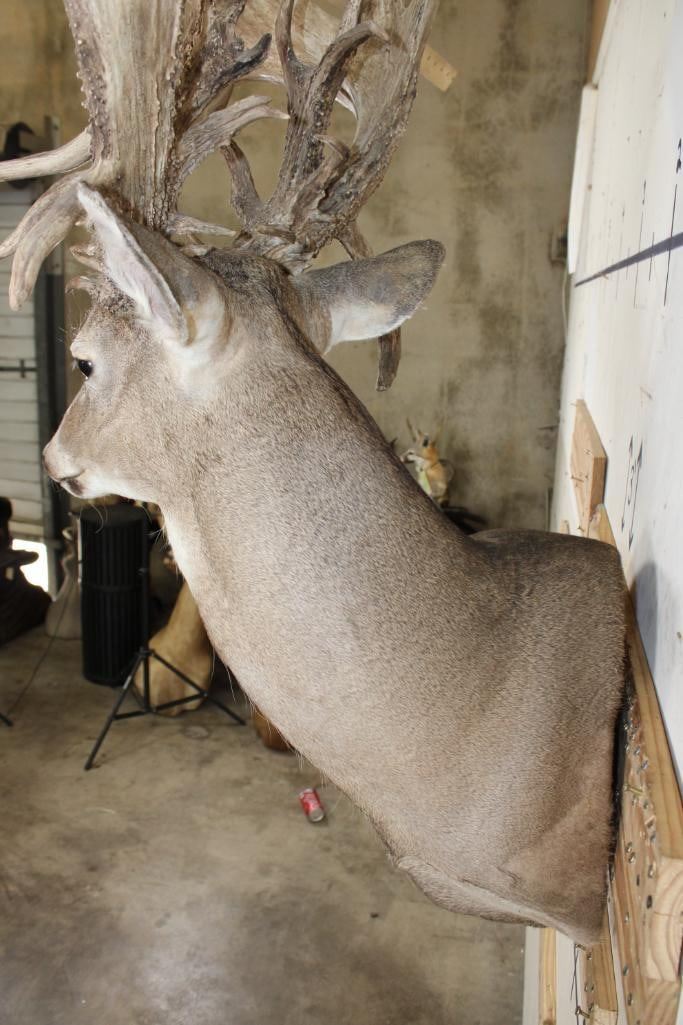 Nice, Newer XXL Non-Typical 44-Point WHITETAIL DEER Wall Pedestal in Good Condition. It has a Tall Basket and a 22" Spread. ODDITIES AND CURIOSITIES TAXIDERMY