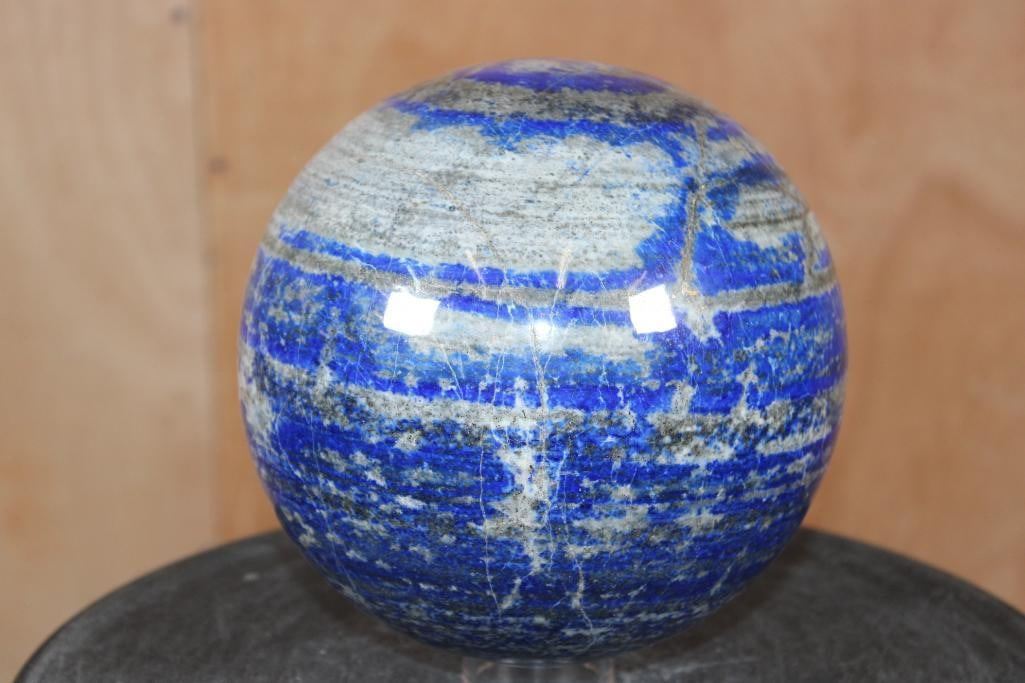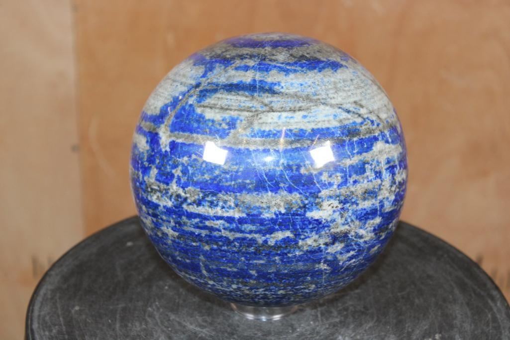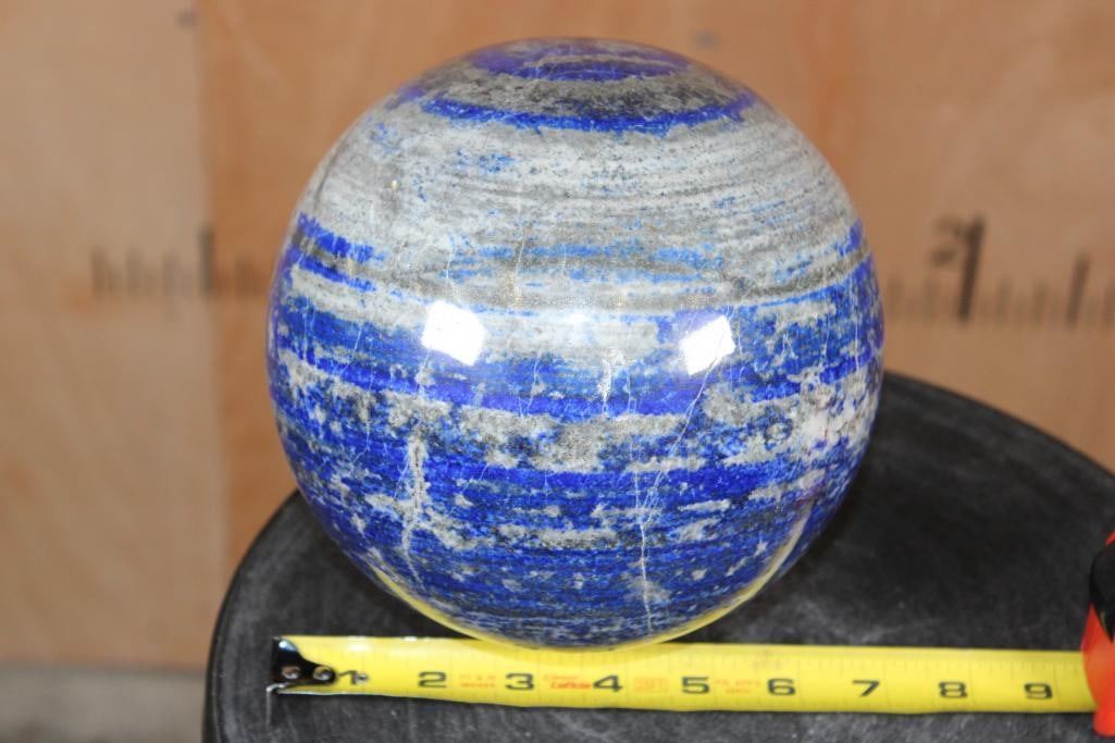 XXL Formed and Polished BLUE LAPIS LAZULI Mineral Sphere. It measures 6 7/8" in Diameter and the Total Weight is 18 lbs 10 oz. Lapis Lazuli is a deep blue metamorphic rock used as a semi-precious stone that has been prized since antiquity for its intense color. ROCKS FOSSILS MINERALS