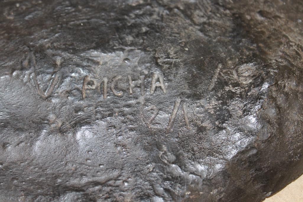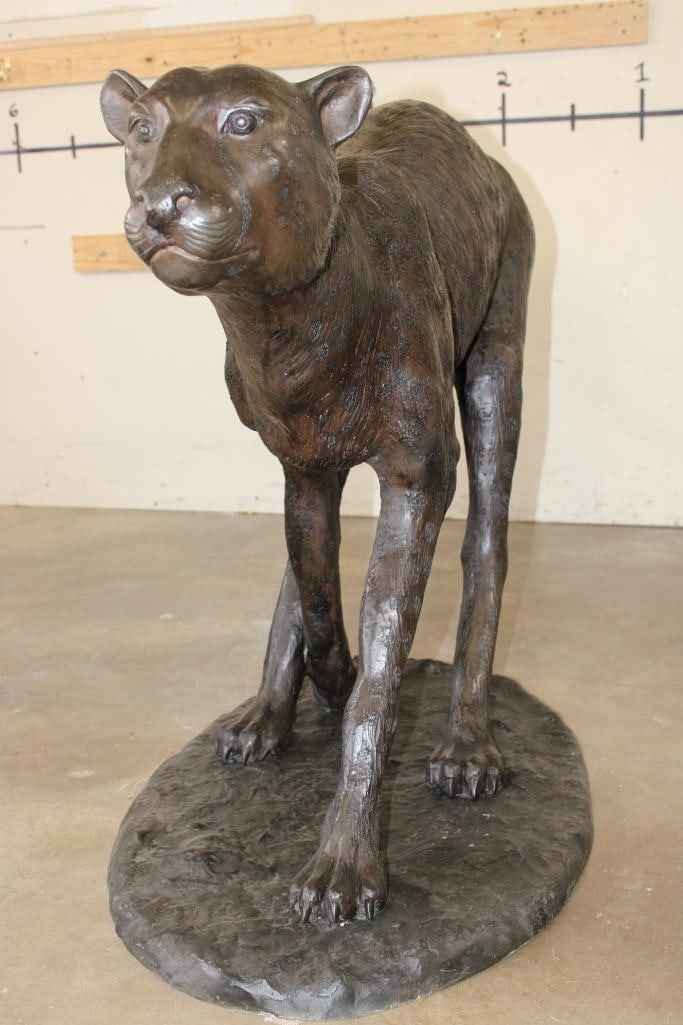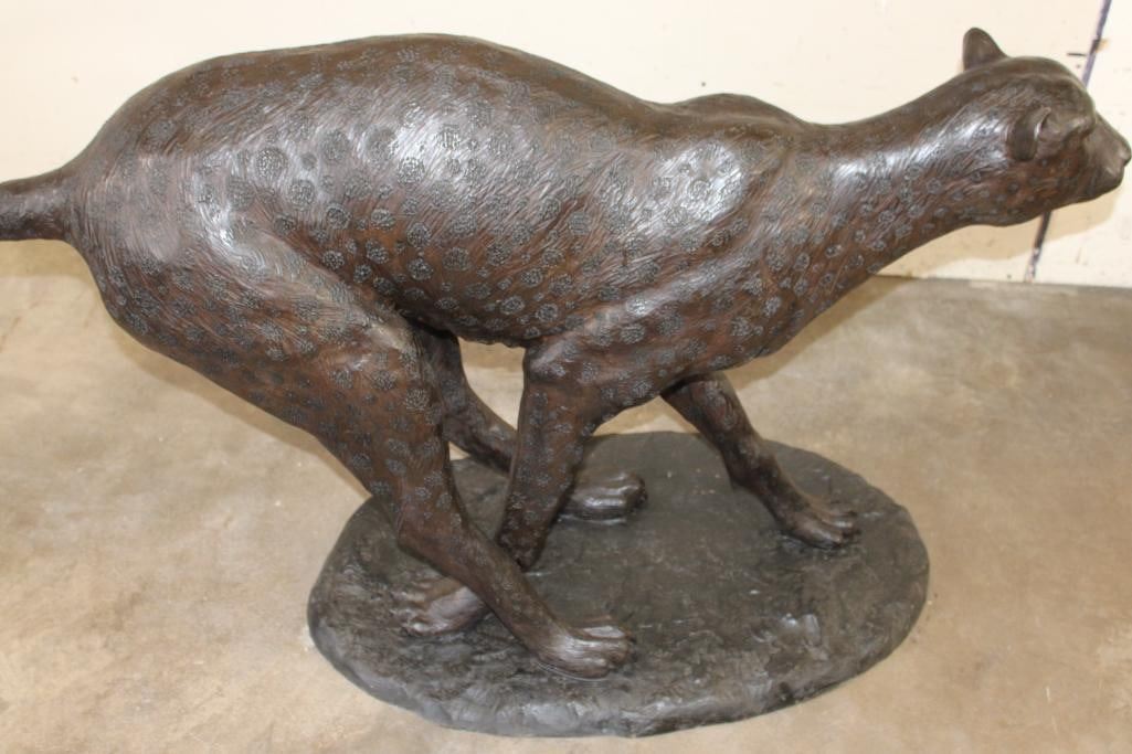 XXXL Life-sized CHEETAH Bronze signed by Sculptor V. Picha. The artist also included a date that is difficult to decipher, possibly 2/19/80. It measures 6' 4.5" Long x 22" Wide x 33" Tall. The Total Weight is 153 lbs! This is an incredibly detailed bronze. The Cheetah spots are mesmerizing. COLLECTIBLE BRONZE ART SCULPTURES AND STATUES