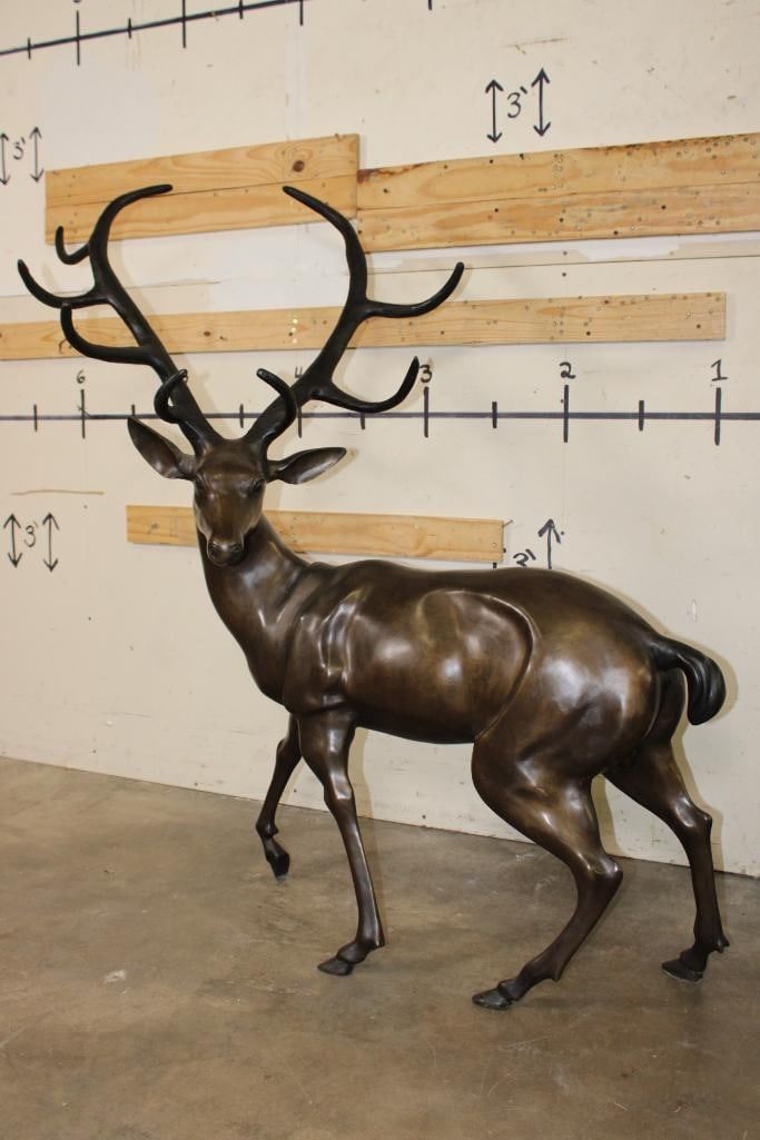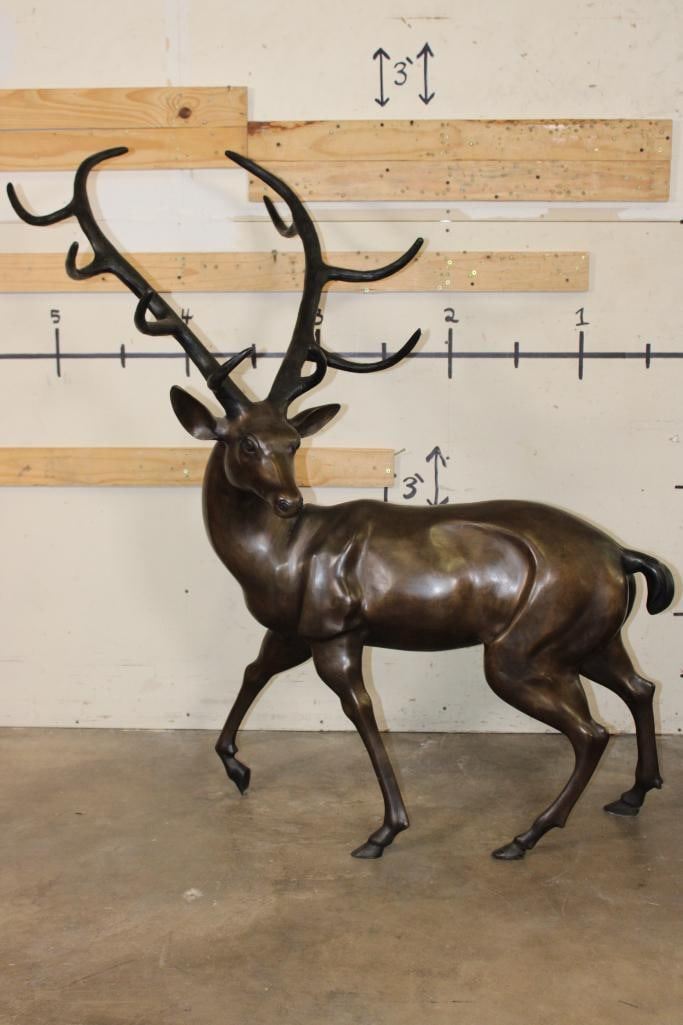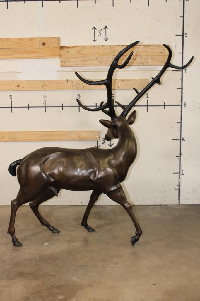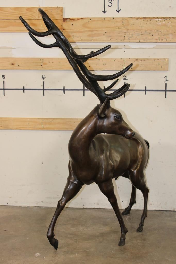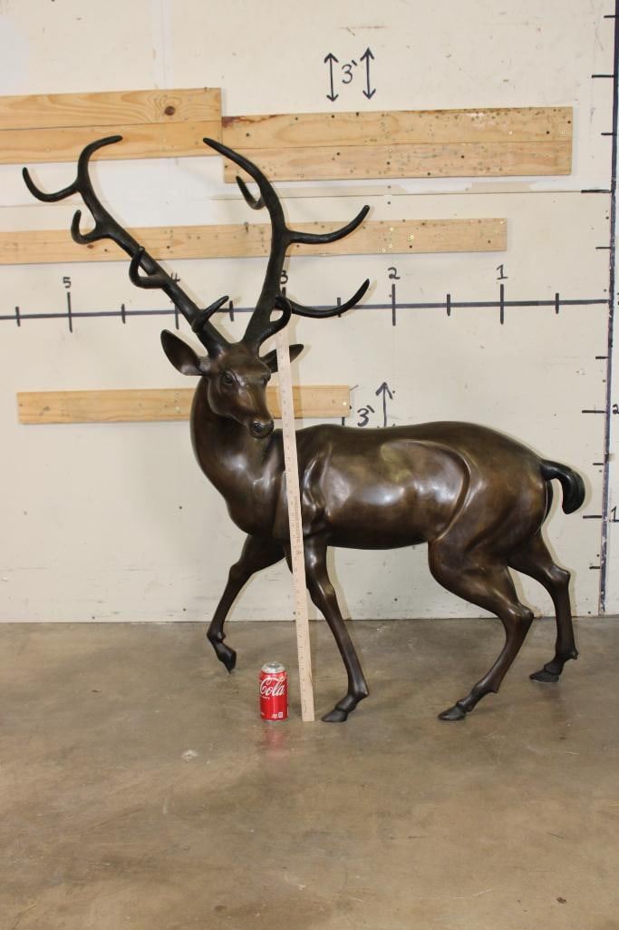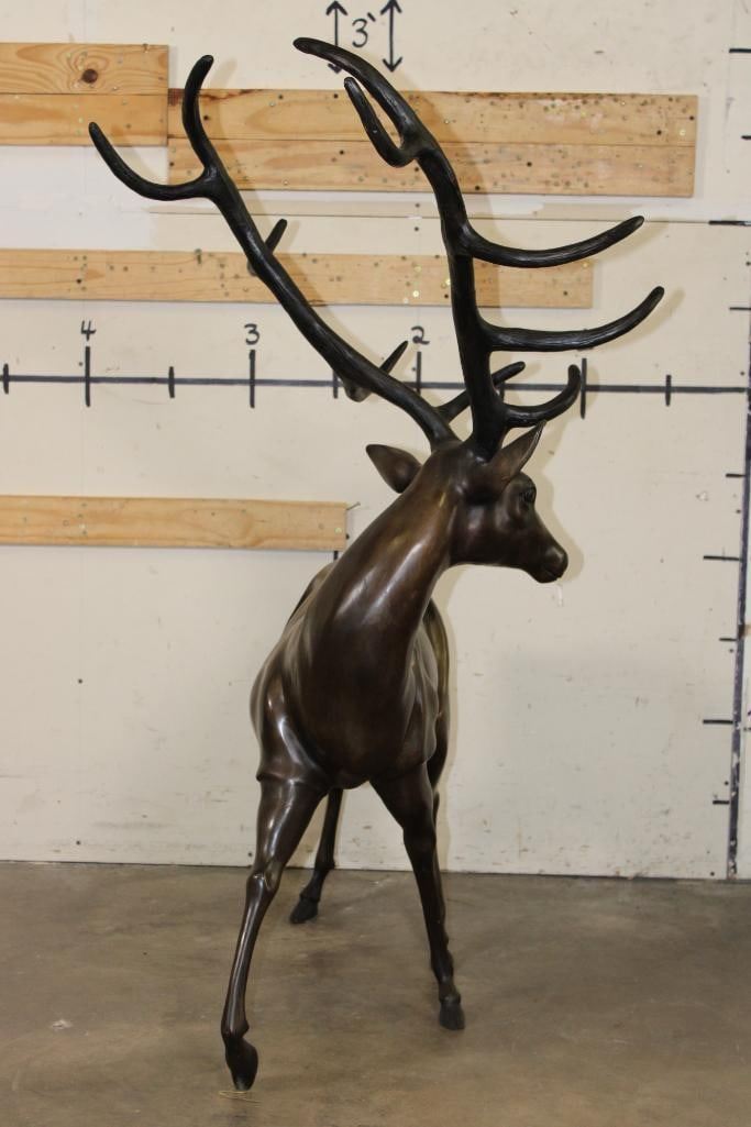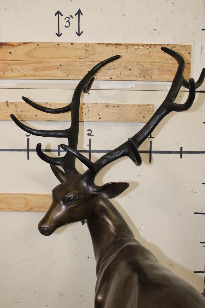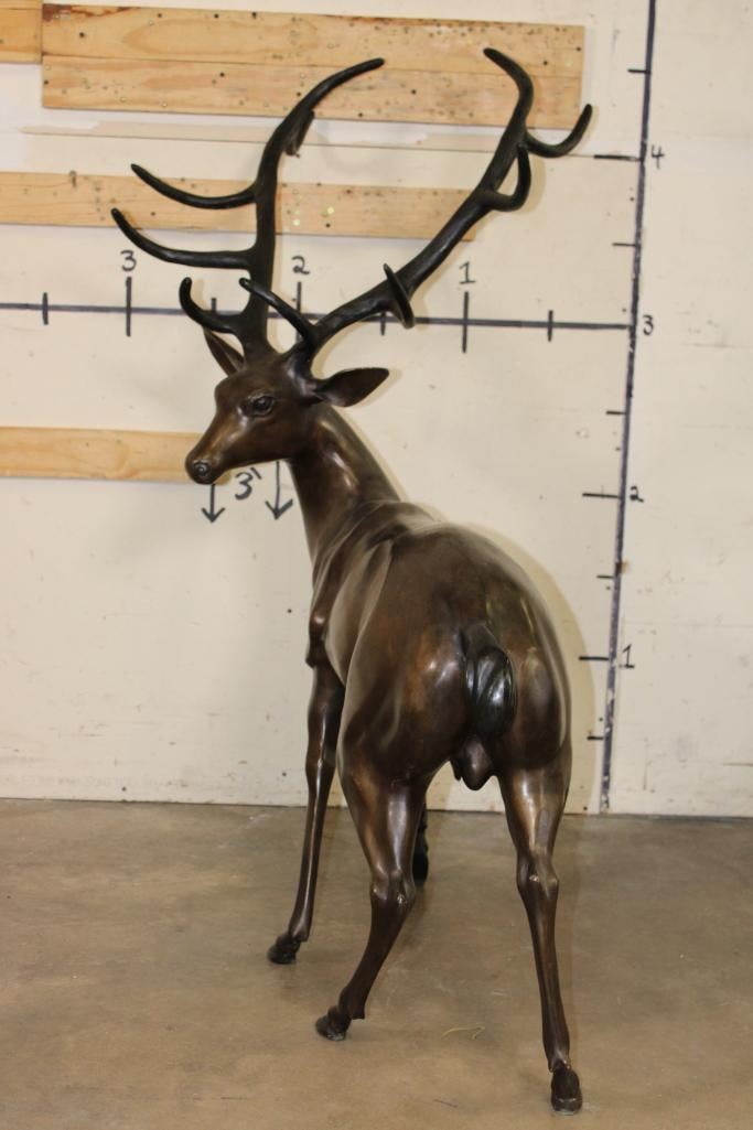 XXXL STAG Bronze Sculpture. It stand over 4 Feet Tall! The Total measurements are 51.25" Long x 30" Wide x 53.25" Tall. The Total Weight is 75 lbs. COLLECTIBLE BRONZE ART STATUES AND SCULPTURES